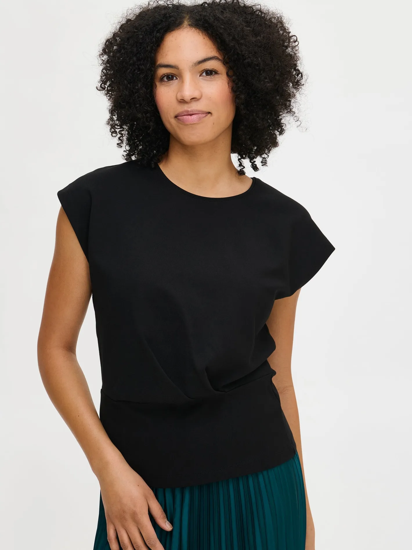 Naisten ajaton musta Elegia-paita. Elegia-pusero on tyylikäs valinta arkeen ja juhlaan – yhdistä se vaikkapa kauniiseen Taite-hameeseen tai klassisiin suoriin housuihin. Paidassa on pyöreä pääntie, holkkihihat ja edessä vyötäröllä laskokset. Paidan pituus koossa M on noin 62 cm. Materiaali on miellyttävän tuntuista interlock-neulosta.