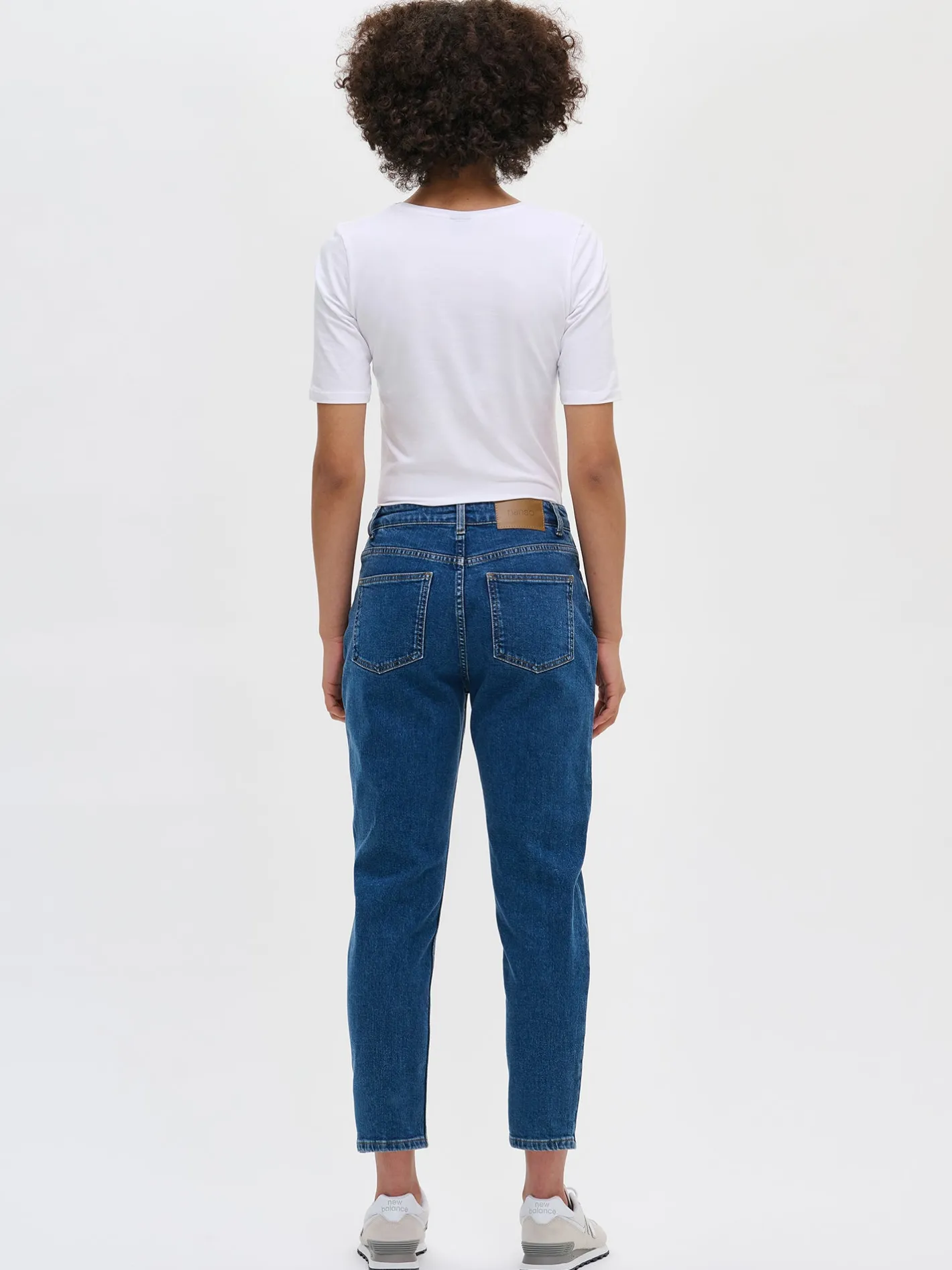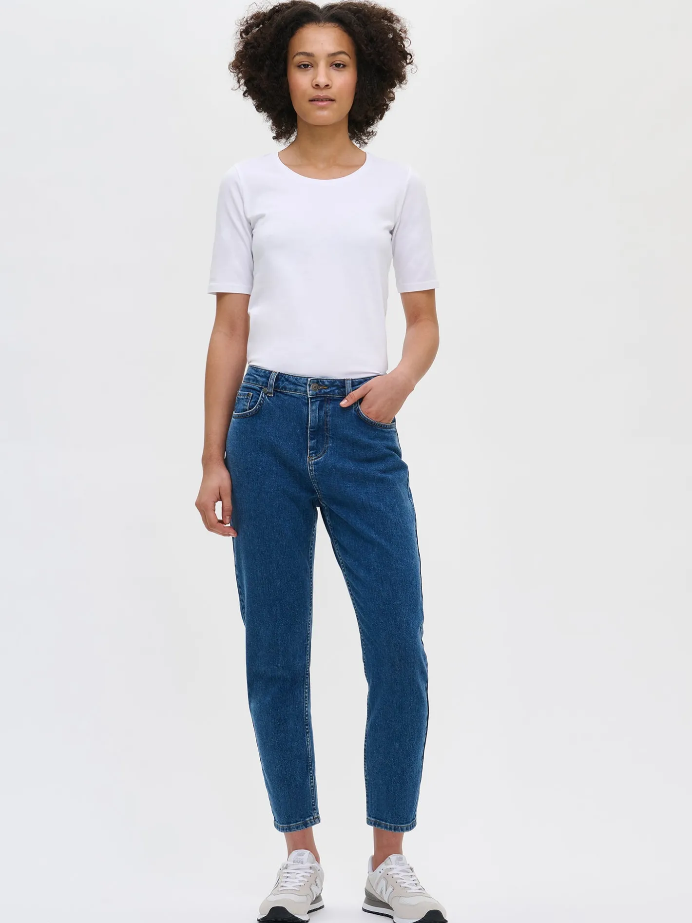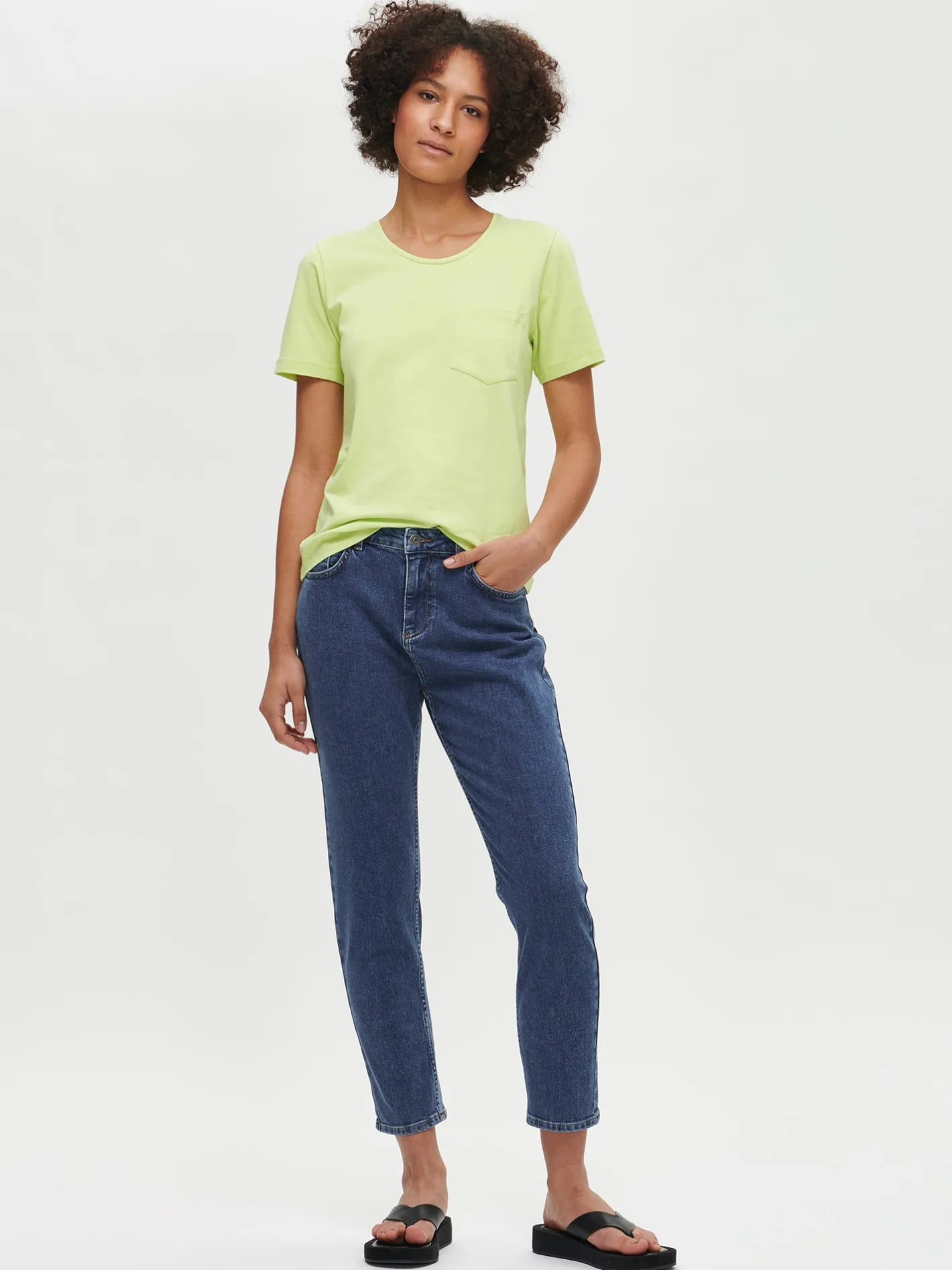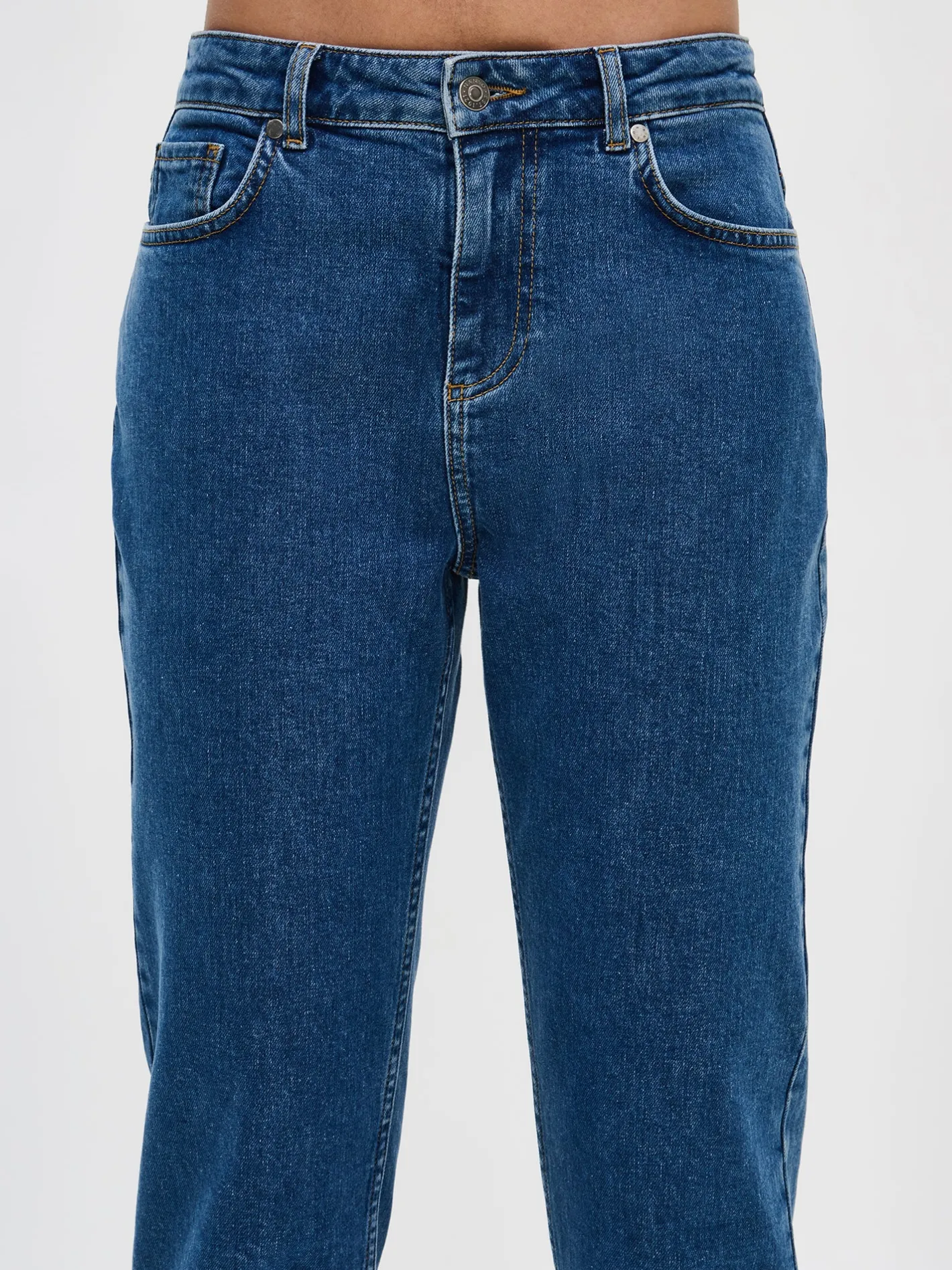 Naisten mukavat siniset Fiilis-farkut, joissa on normaalikorkuinen vyötärö. Trendikkäästi vajaamittaiset Fiilis-farkut ovat helppo ja tyylikäs valinta arkeen. Laadukkaista materiaaleista valmistetut farkut kestävät käyttöä vuodesta toiseen. Farkuissa on vyötärökaitale, edessä vetoketju ja nappikiinnitys. Vajaamittaisissa rennoissa farkuissa on taskut sivuissa sekä takana ja kevyesti kapeneva lahkeensuu. Farkkujen lahkeen sisäpituus koossa 38 on noin 68 cm. Materiaali on kudottua twillsidoksista puuvilla-denimkangasta, johon elastaani tuo joustavuutta ja mukavuutta. 20% kankaaseen käytetystä puuvillasta on kierrätettyä.