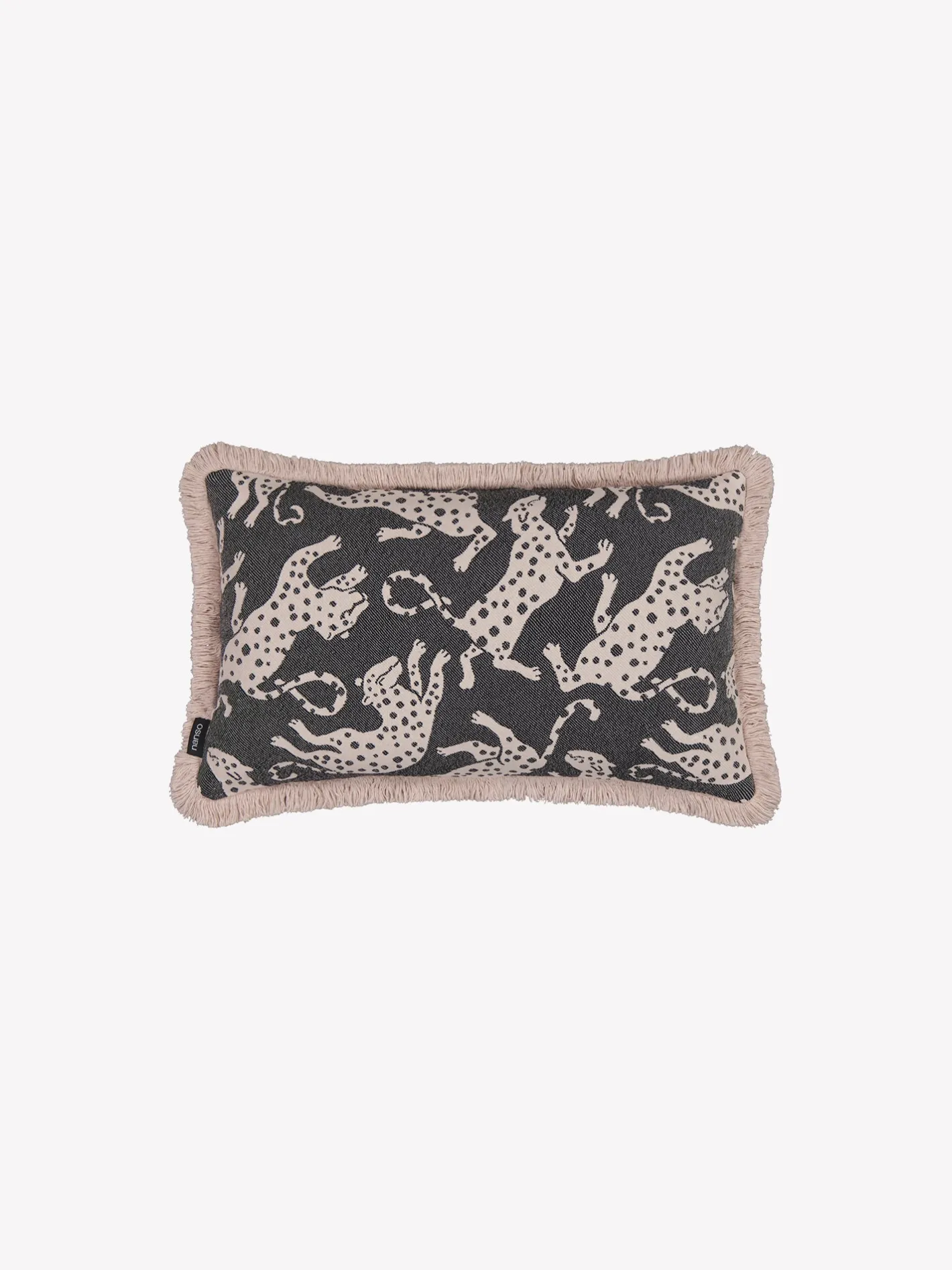 Leopardikuvioinen Hapsu-tyynyliina tummassa sävyssä on rohkea valinta, joka tuo sisustukseen näyttävää ilmettä. Kestävä puuvillamateriaali ja jacquard-kudonta takaavat laadun, kun taas reunoissa olevat beiget hapsut viimeistelevät kokonaisuuden. Vetoketju alareunassa tekee tyynyn vaihtamisesta vaivatonta. Kompakti 50 x 30 cm koko sopii täydellisesti tuomaan särmää sisustukseen.