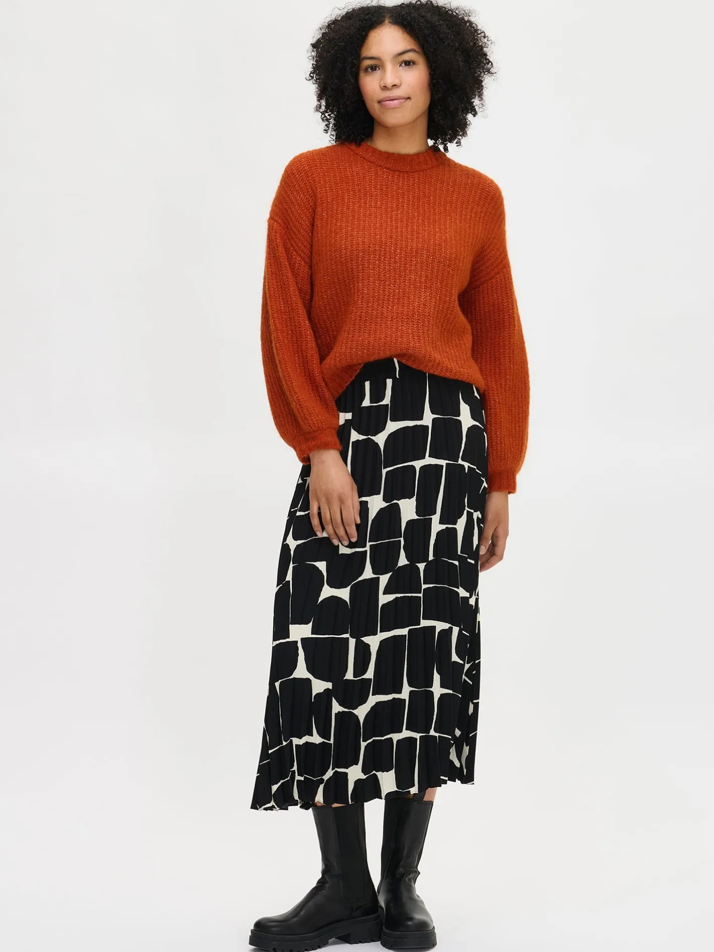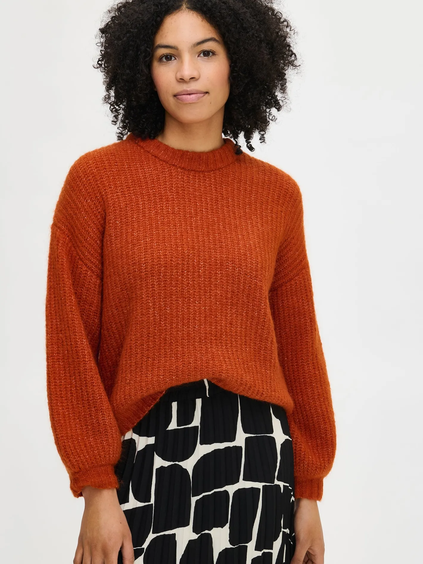 Naisten ylellinen ruskea Karamelli-neulepusero pyöreällä pääntiellä. Lämmin ja muhkea neulepusero on syksyn ehdoton suosikkivaate, sillä pehmeään neulepuseroon on aina ihanaa pukeutua. Neulepaidan neulos on sekoite, jossa on osaksi sertifioitua mohairia, sertifioitua villaa, polyamidia ja hieman elastaania. Muotoonneulotussa neulepuserossa on pyöreä pääntie ja täyspitkät hihat. Neulepuseron pituus koossa M on noin 59 cm. Neuleen hoito-ohjeet löydät .
