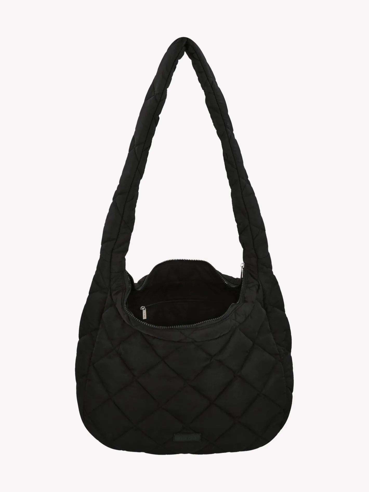 Trendikäs ja käytännöllinen tikkikankaasta valmistettu musta Maxi Vanu-laukku. Tämä pelkistetyn tyylikäs ja ihanan kevyt laukku sopii asuun kuin asuun ja kulkee kätevästi mukana.