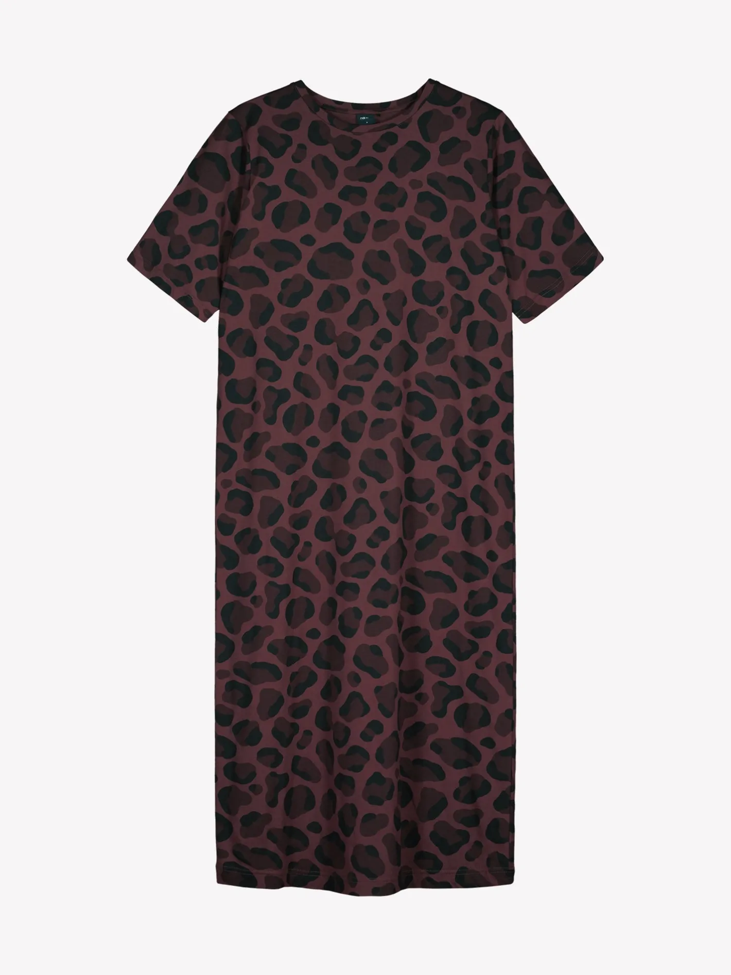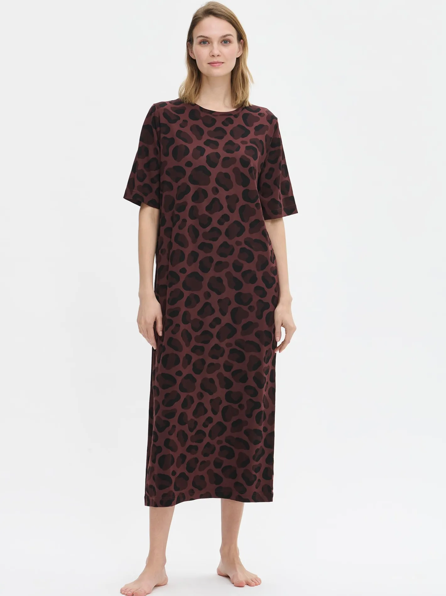 Naisten kuosillinen suoralinjainen Pantteri-yöpaita puoli pitkillä hihoilla ja pyöreällä pääntiellä. Yöpaidan pituus koossa M on noin 130 cm. Materiaali on laadukasta, iholla miellyttävän pehmeältä tuntuvaa ja helppohoitoista puuvilla-modaalia, joka pysyy hyvänä pesusta toiseen. Leikkisä Pantteri-kuosi ja väljä malli tekevät tästä yöpaidasta ihanan valinnan rauhallisiin iltoihin ja hitaisiin aamuihin.
