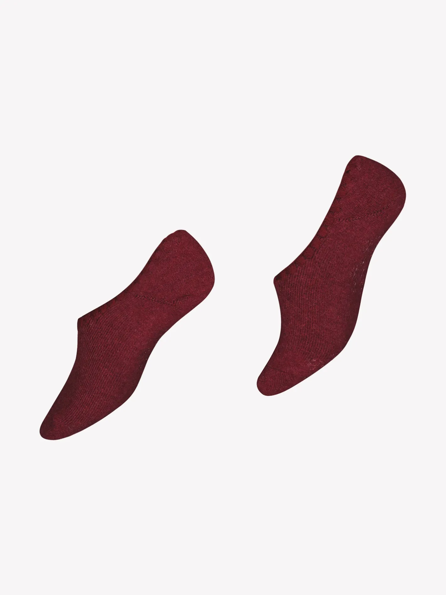 Voguen viininpunaiset villasekoitteesta valmistetut varrettomat sukat. Sukissa on naisellinen reuna-applikaatio sekä pohjassa liukuestepainatus.