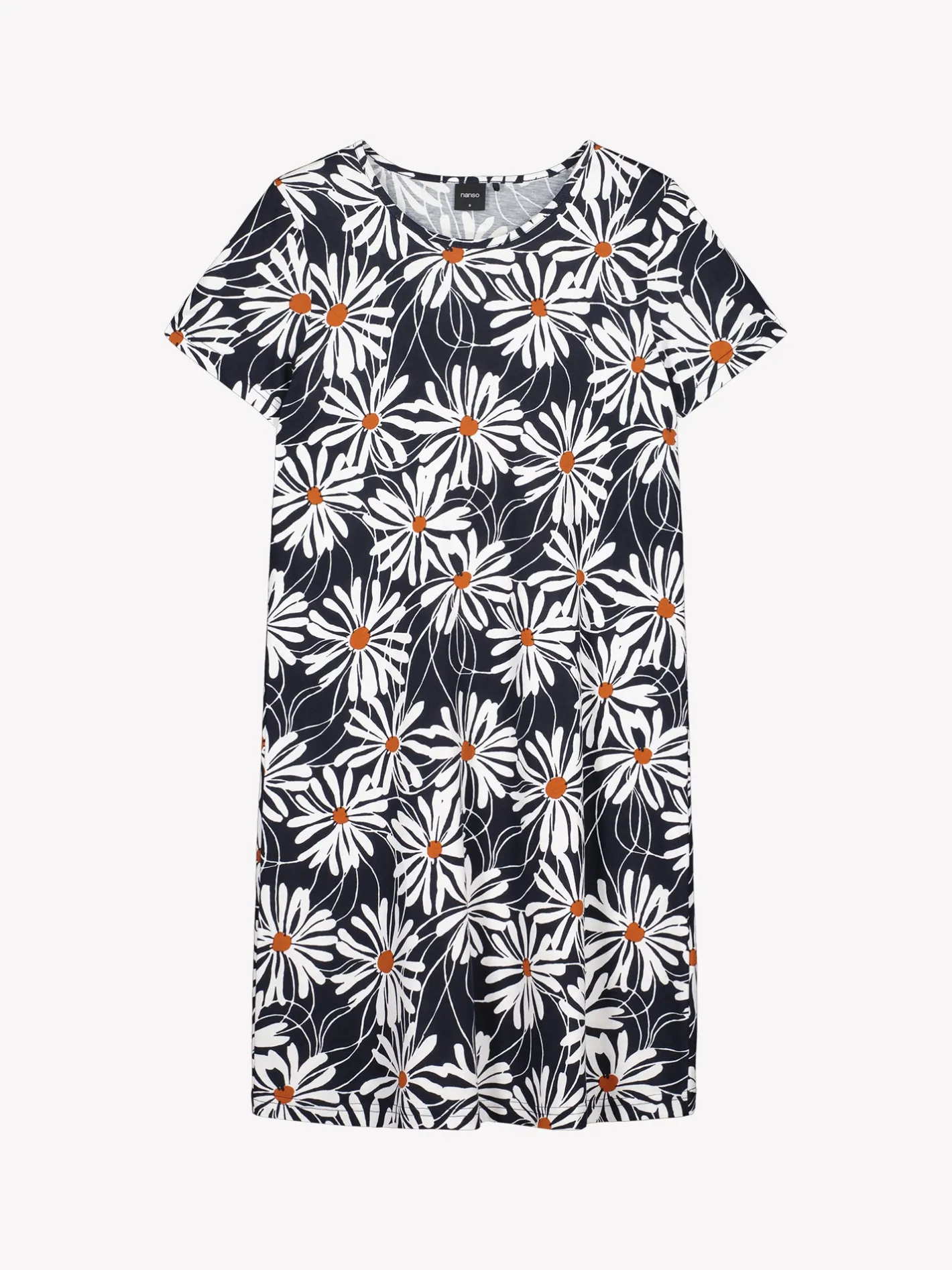 Naisten kukkakuosillinen Anette-yöpaita lyhyillä hihoilla ja pyöreällä pääntiellä sinisessä sävyssä. Yöpaidan pituus koossa M on noin 95 cm. Materiaali on laadukasta, iholla miellyttävän pehmeältä tuntuvaa ja helppohoitoista puuvilla-modaalia, joka pysyy hyvänä pesusta toiseen.