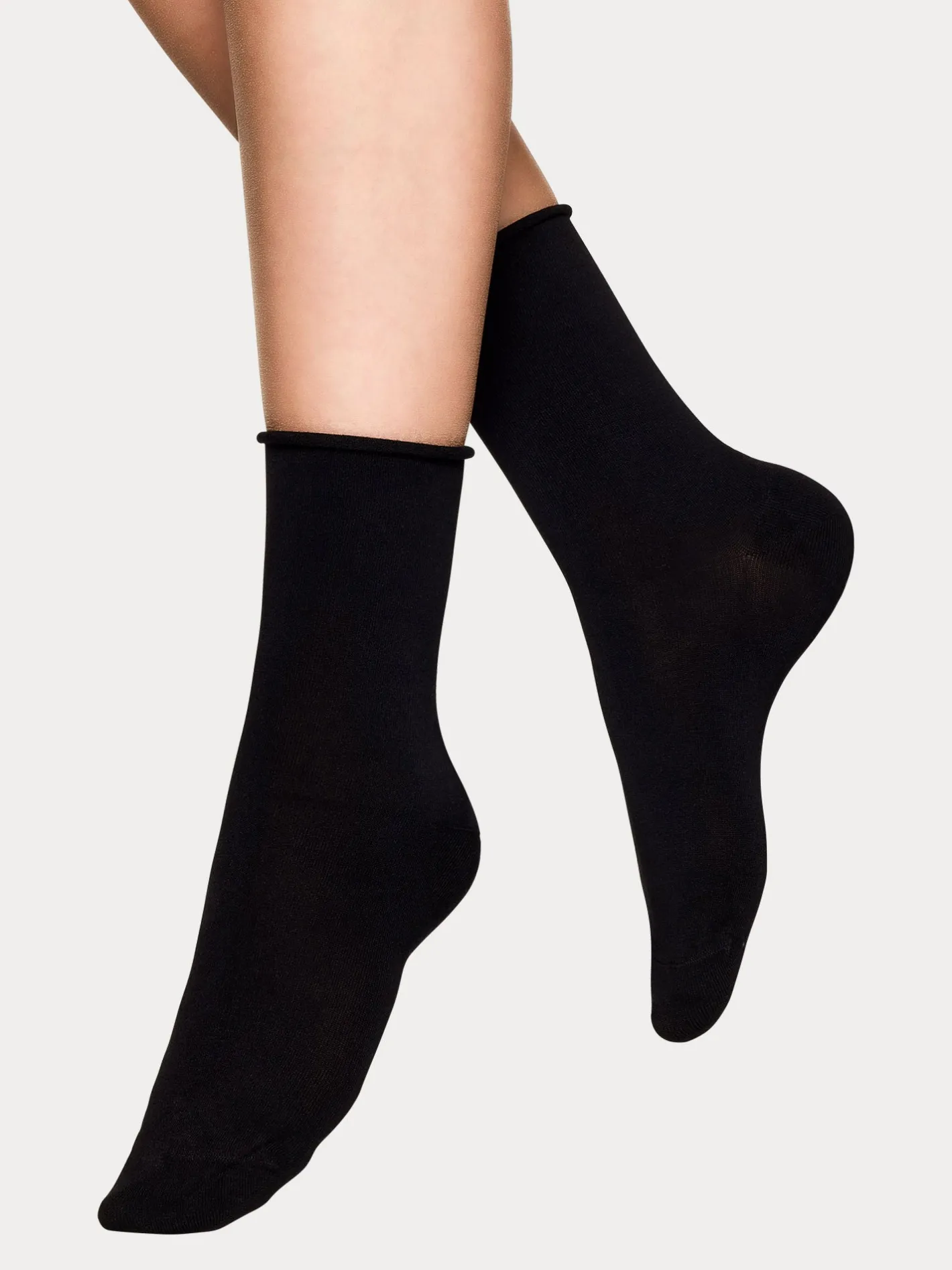 Voguen rullareunaiset mustat nilkkasukat bambusekoitteesta saumattomalla kärjellä. Bambun ansiosta sukat ovat silkinpehmeät, hengittävät ja luonnollisesti lämpöä säätelevät.