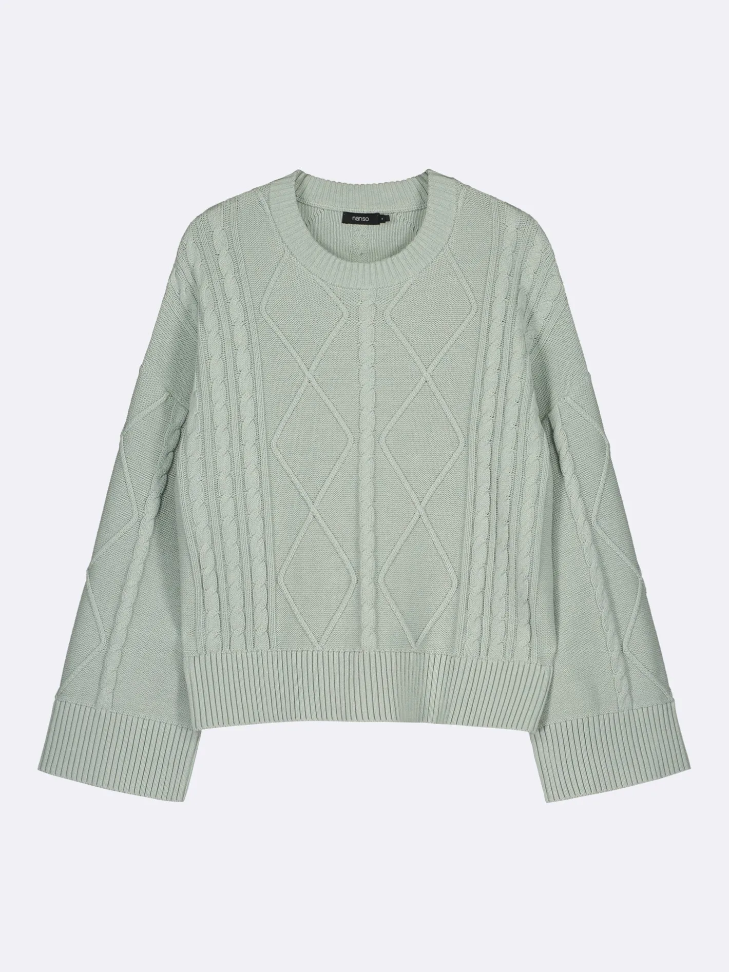 Naisten sinivihreä Coletta-neulepusero kauniilla palmikkokuviolla. Tyylikkääseen puuvillaneuleeseen on mukavaa pukeutua aina. Muotoonneulotussa laatikkomaisessa neulepuserossa on pyöreä pääntie ja hieman vajaamittaiset hihat. Neuleessa on kaunis palmikko kuviointi ja resori hihansuissa sekä helmassa. Tuotteen pituus koossa M on noin 58 cm. Neulepusero on valmistettu laadukkaasta sertifioidusta puuvillasta.