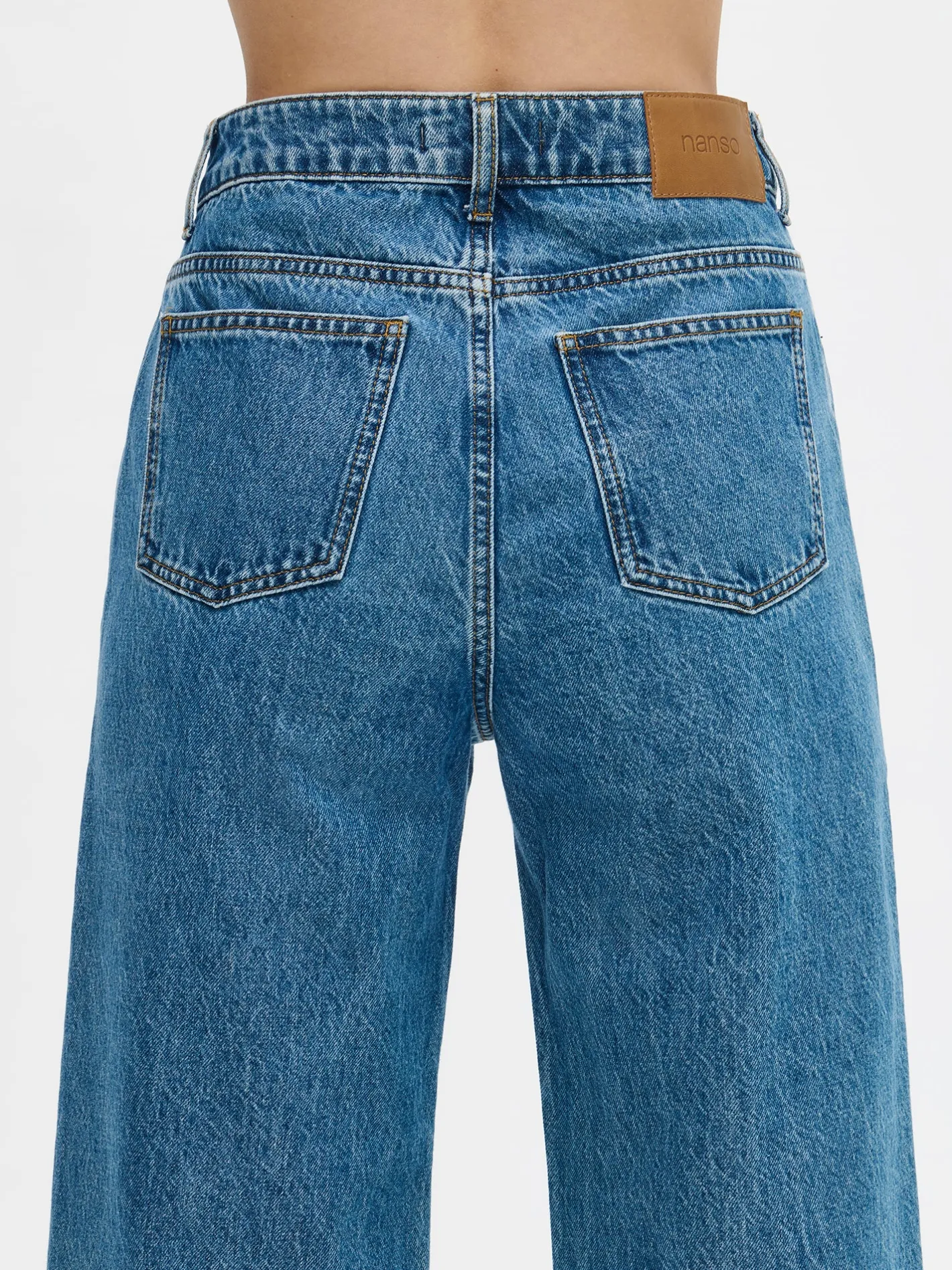 Naisten siniset Cropped Levee-farkut, joissa on normaalikorkuinen vyötärö. Trendikkäästi vajaamittaiset Levee-farkut ovat helppo ja tyylikäs valinta arkeen. Farkuissa on vyötärökaitale, edessä vetoketju ja nappikiinnitys. Rennoissa farkuissa on taskut edessä ja takana sekä levenevät, vajaamittaiset lahkeet. Lahkeen sisäpituus koossa 38 on noin 65 cm. Materiaali on kudottua twillsidoksista puuvilla-denimkangasta. 20 % kankaaseen käytetystä puuvillasta on kierrätettyä.