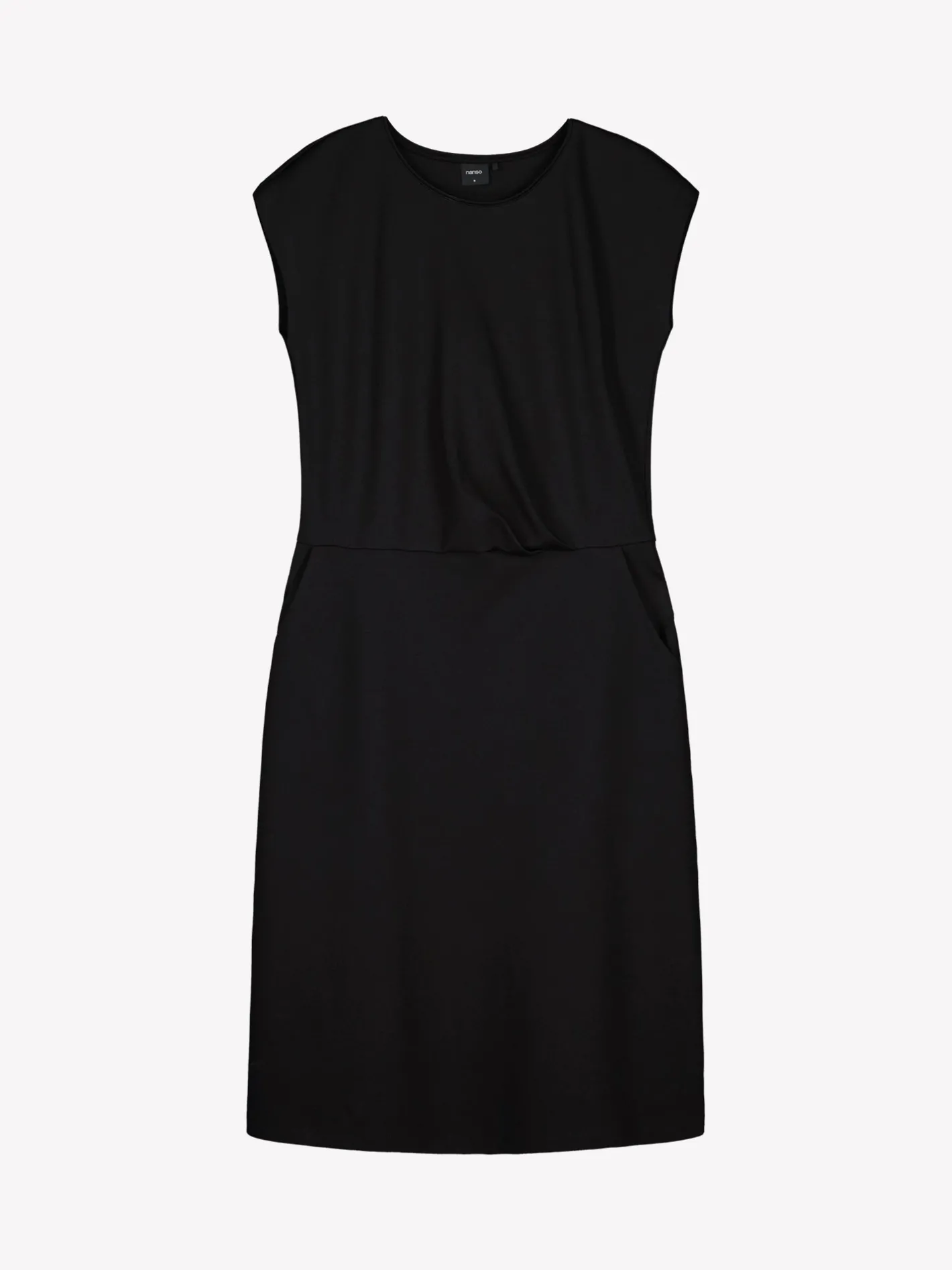 Naisten ajaton musta Elegia-mekko. Kaunis ja mukava mekko sopii moniin tilanteisiin – erityisesti pikkujoulukauden juhliin. Mekossa on pyöreä pääntie, holkkihihat, taskut ja edessä vyötäröllä laskokset. Mekon pituus koossa M on noin 115 cm. Materiaali on miellyttävän tuntuista interlock-neulosta.