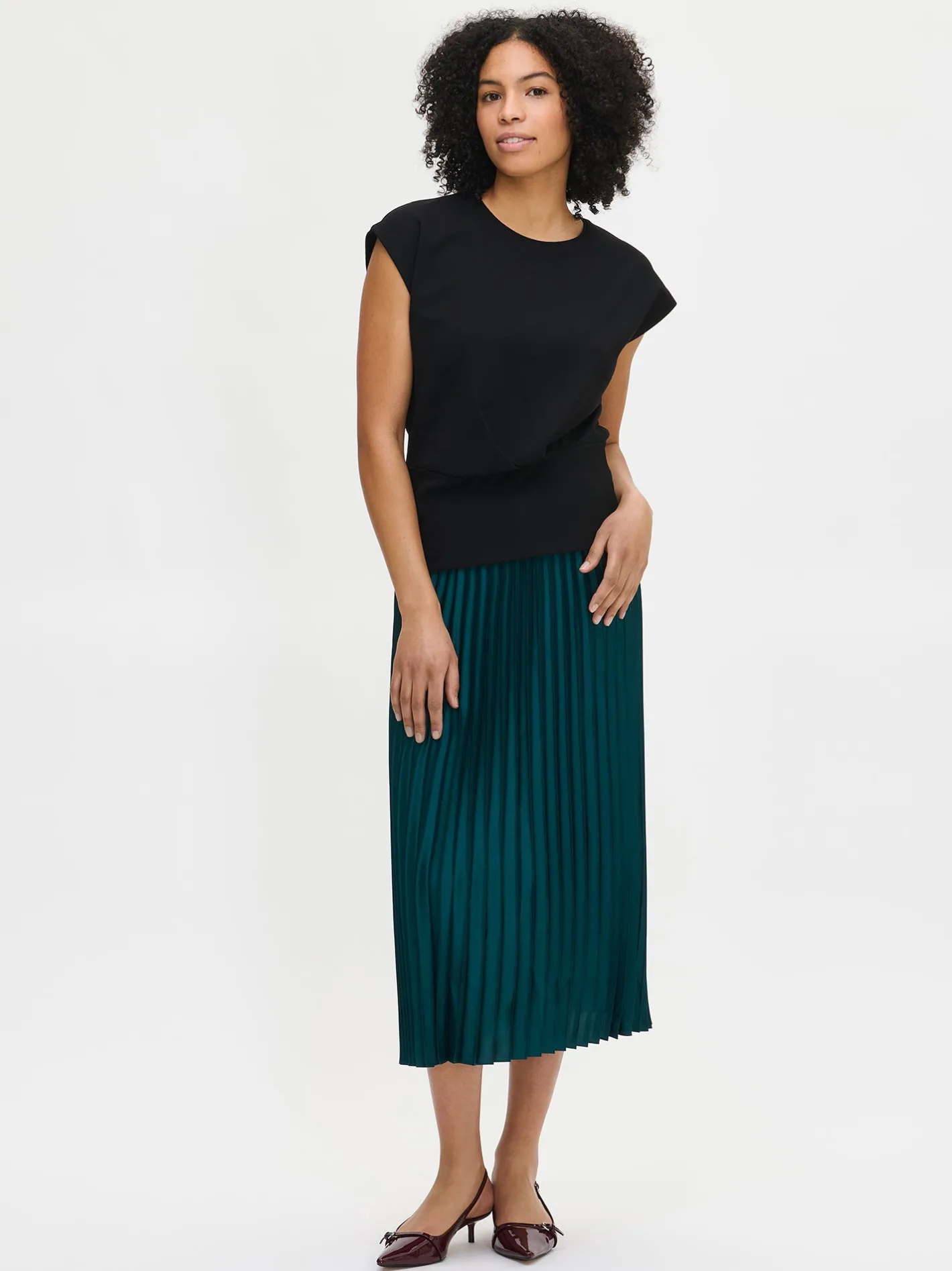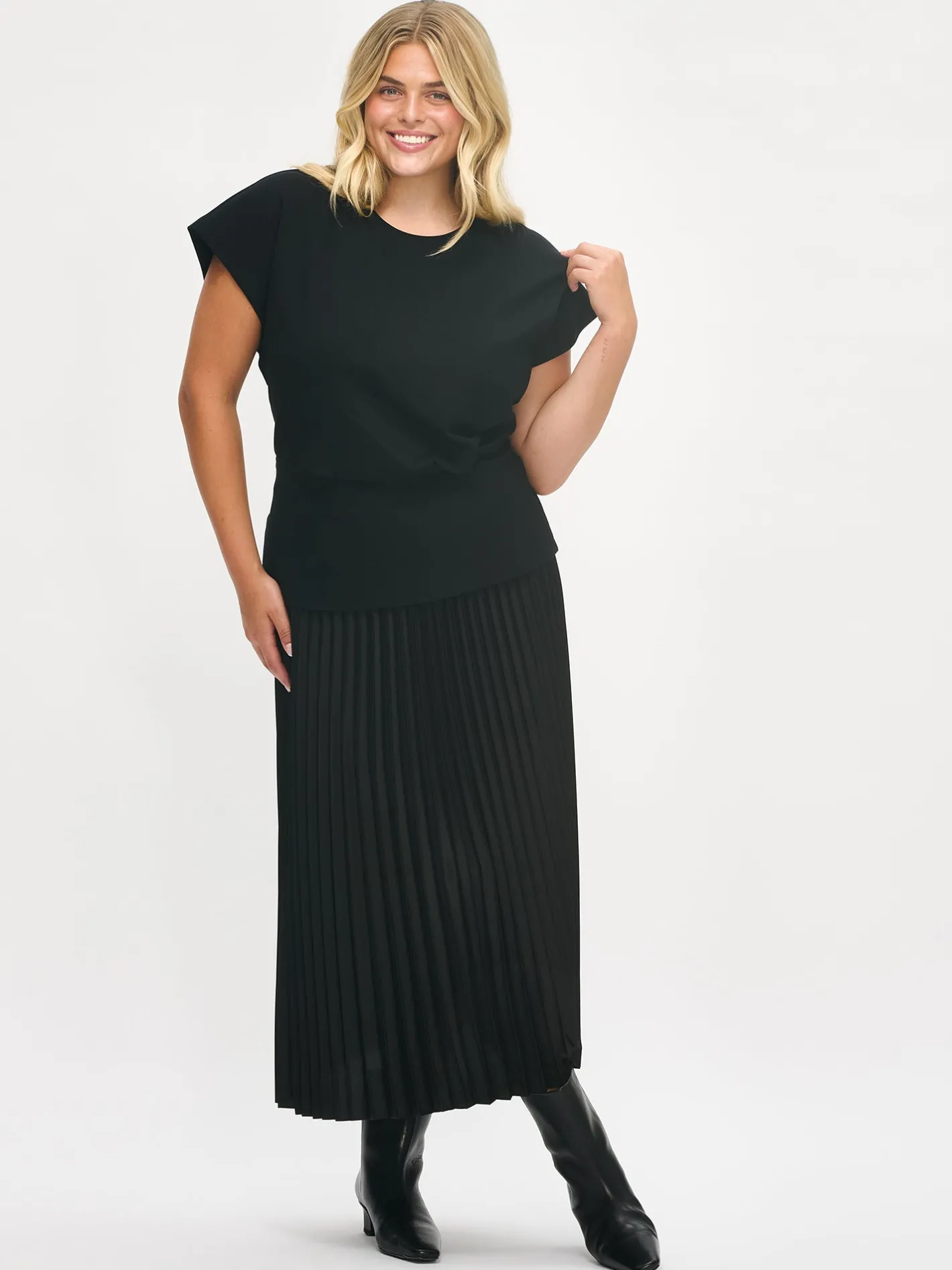 Naisten ajaton musta Elegia-paita. Elegia-pusero on tyylikäs valinta arkeen ja juhlaan – yhdistä se vaikkapa kauniiseen Taite-hameeseen tai klassisiin suoriin housuihin. Paidassa on pyöreä pääntie, holkkihihat ja edessä vyötäröllä laskokset. Paidan pituus koossa M on noin 62 cm. Materiaali on miellyttävän tuntuista interlock-neulosta.