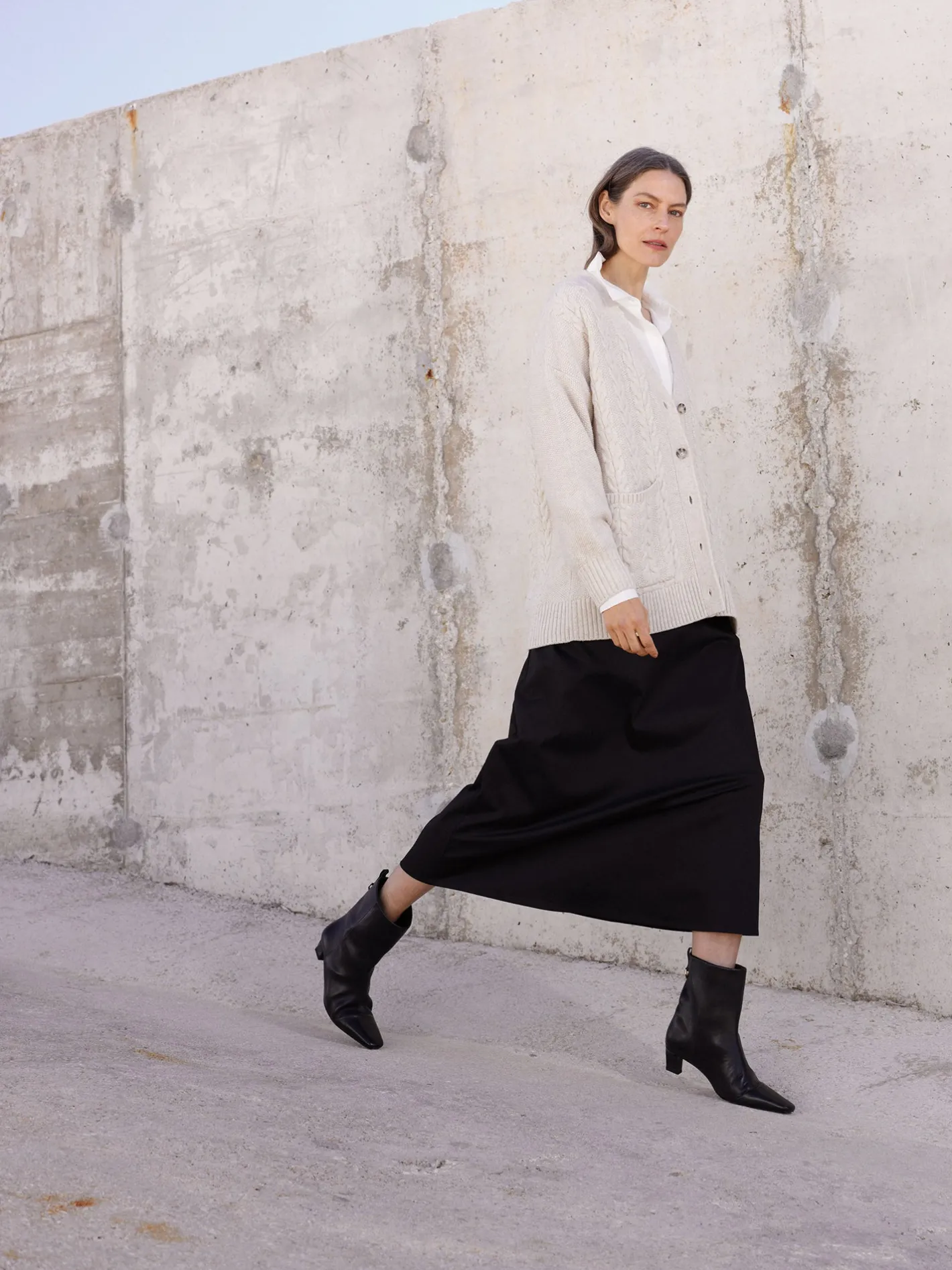 Viktorija on 180 cm pitkä ja hänellä on päällään tuotteesta koko 36. Mallin ympärysmitat ovat: rinta 87 cm, vyötärö 63 cm ja lantio 91 cm.