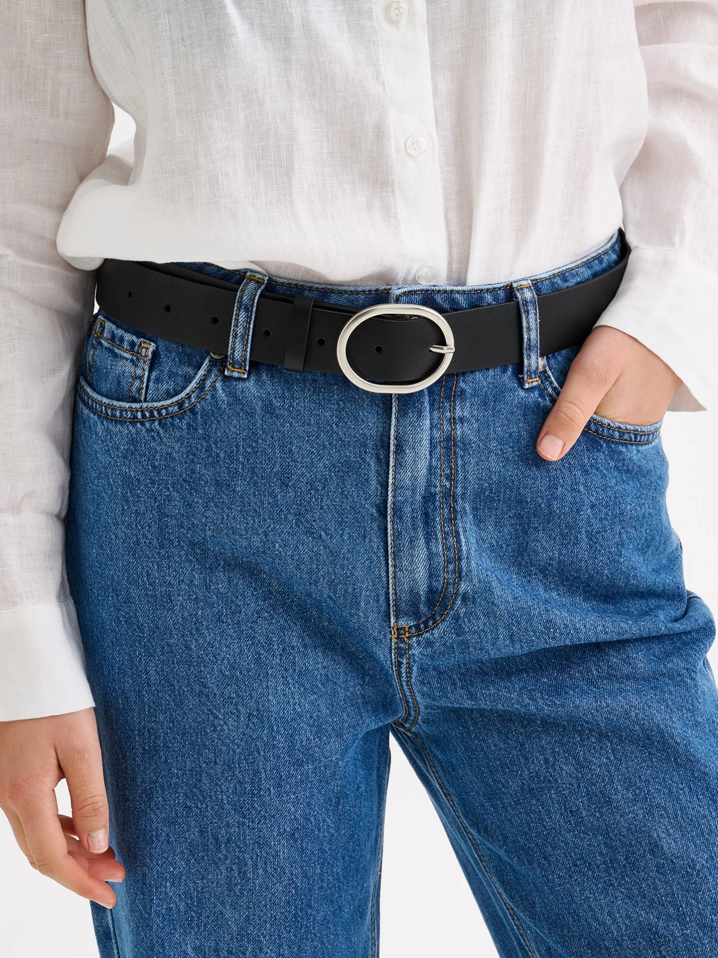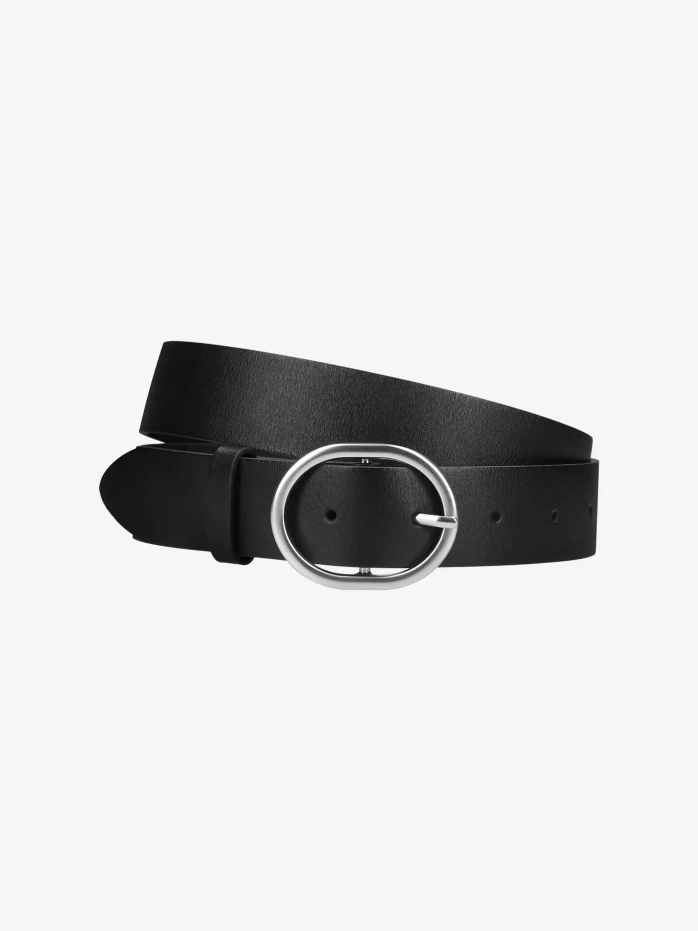 Naisten klassinen musta nahasta valmistettu Juulia-vyö. Vyössä on seitsemän reikää itselle sopivan koon säätämistä varten – vyötä voi käyttää sekä lantiolla että vyötäröllä. Vyössä on metallinen pyöreä solki, joka on matta hopean värinen. Tuote on valmistettu sertifioidusta nahasta. Vyön leveys on noin 3,7 cm. Vyötä on saatavilla kahdessa eri pituudessa.