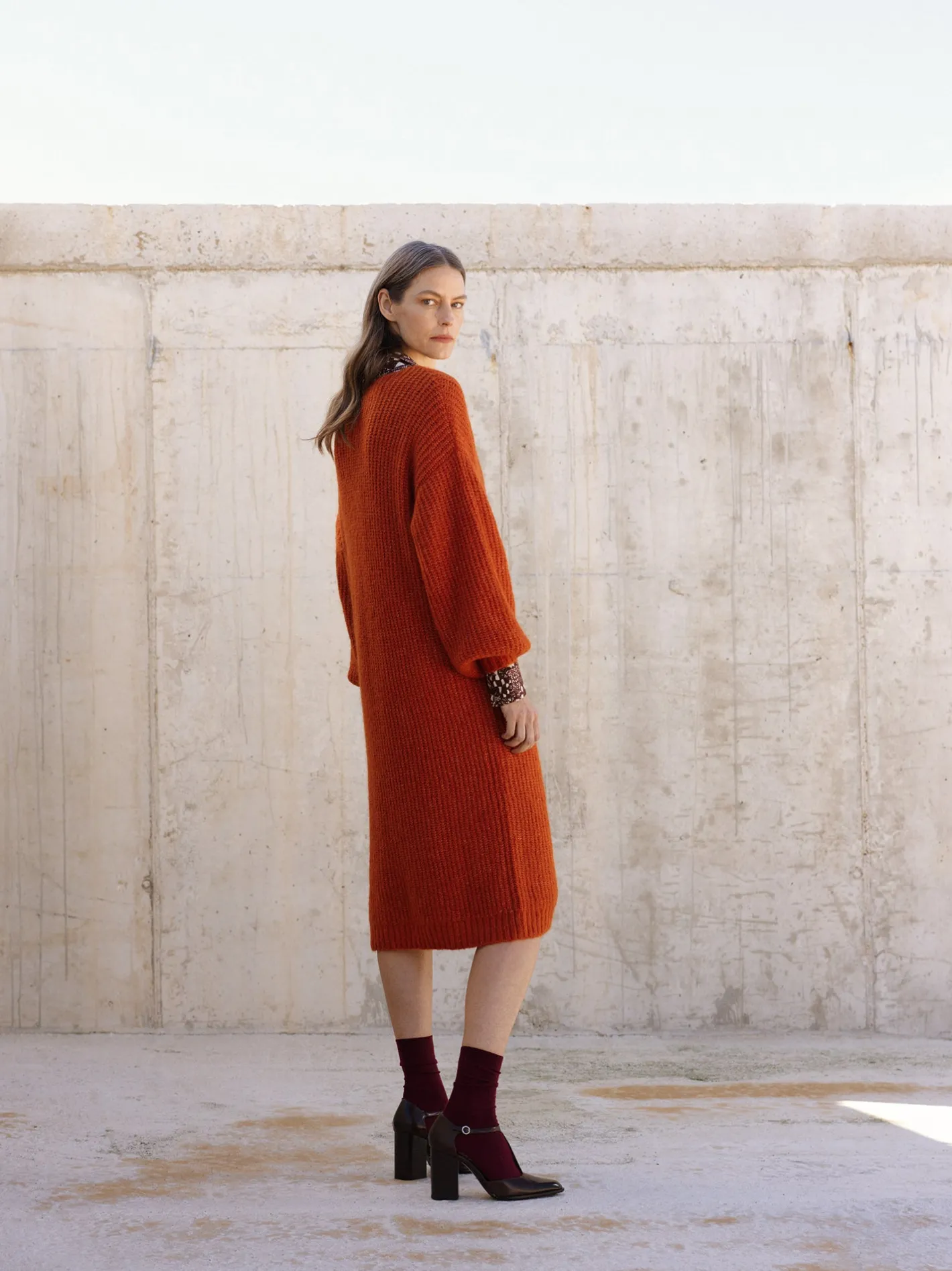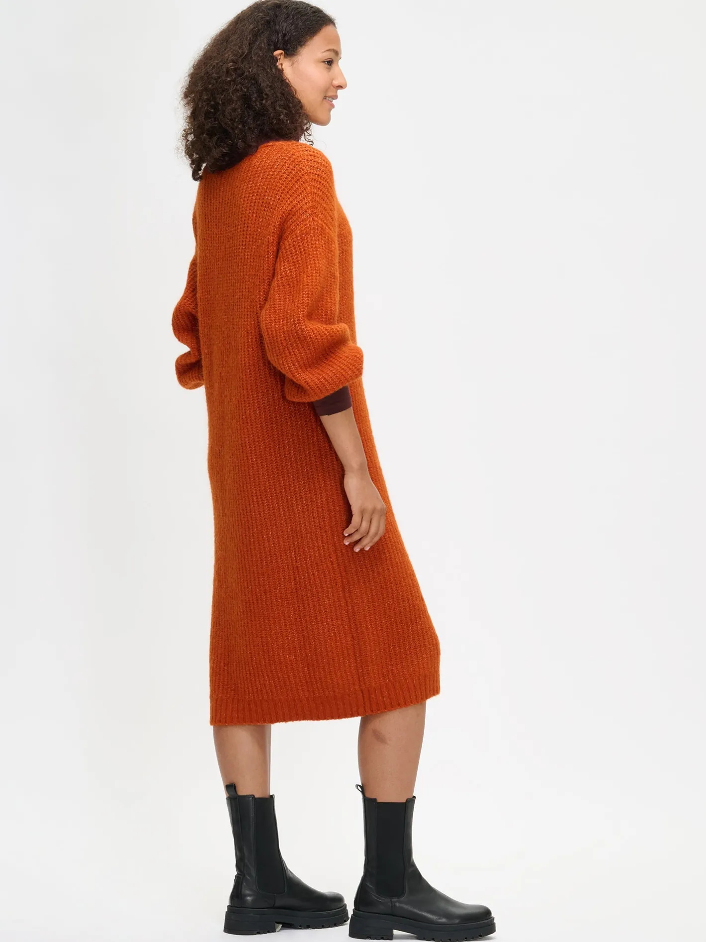 Naisten ylellinen ruskea Karamelli-neulemekko. Ihana neulemekko on täydellinen valinta viileisiin säihin. Muhkean neulemekon neulos on sekoite, jossa on osaksi sertifioitua mohairia, sertifioitua villaa, polyamidia ja hieman elastaania. Muotoonneulotussa suoralinjaisessa neulemekossa on pyöreä pääntie ja täyspitkät hihat. Neulemekon pituus koossa M on noin 103 cm. Neuleen hoito-ohjeet löydät