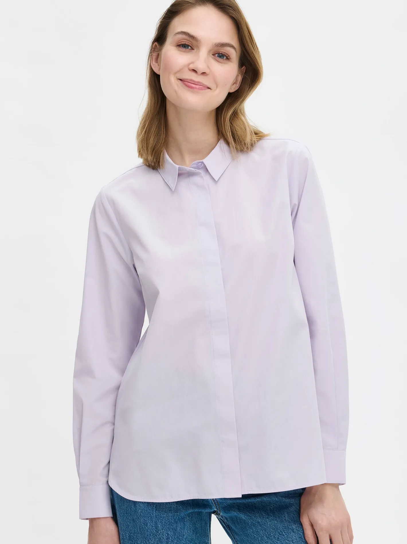 Naisten klassinen lila Lena-paitapusero. Tyylikkäässä paitapuserossa on edessä piilonapitus sekä helmassa sivuissa pyöristetyt halkiot. Puserossa on täyspitkät hihat, joiden hihansuissa on nappikalvosimet. Puseron pituus koossa 38 on noin 70 cm. Tuote on valmistettu laadukkaasta ja ryhdikkäästä kudotusta puuvilla-popliinikankaasta, jonka puuvilla on sertifioitua. Materiaali saattaa kutistua muutaman prosentin ensimmäisessä pesussa. Mittoja saa palautettua silittämällä tuotteen.