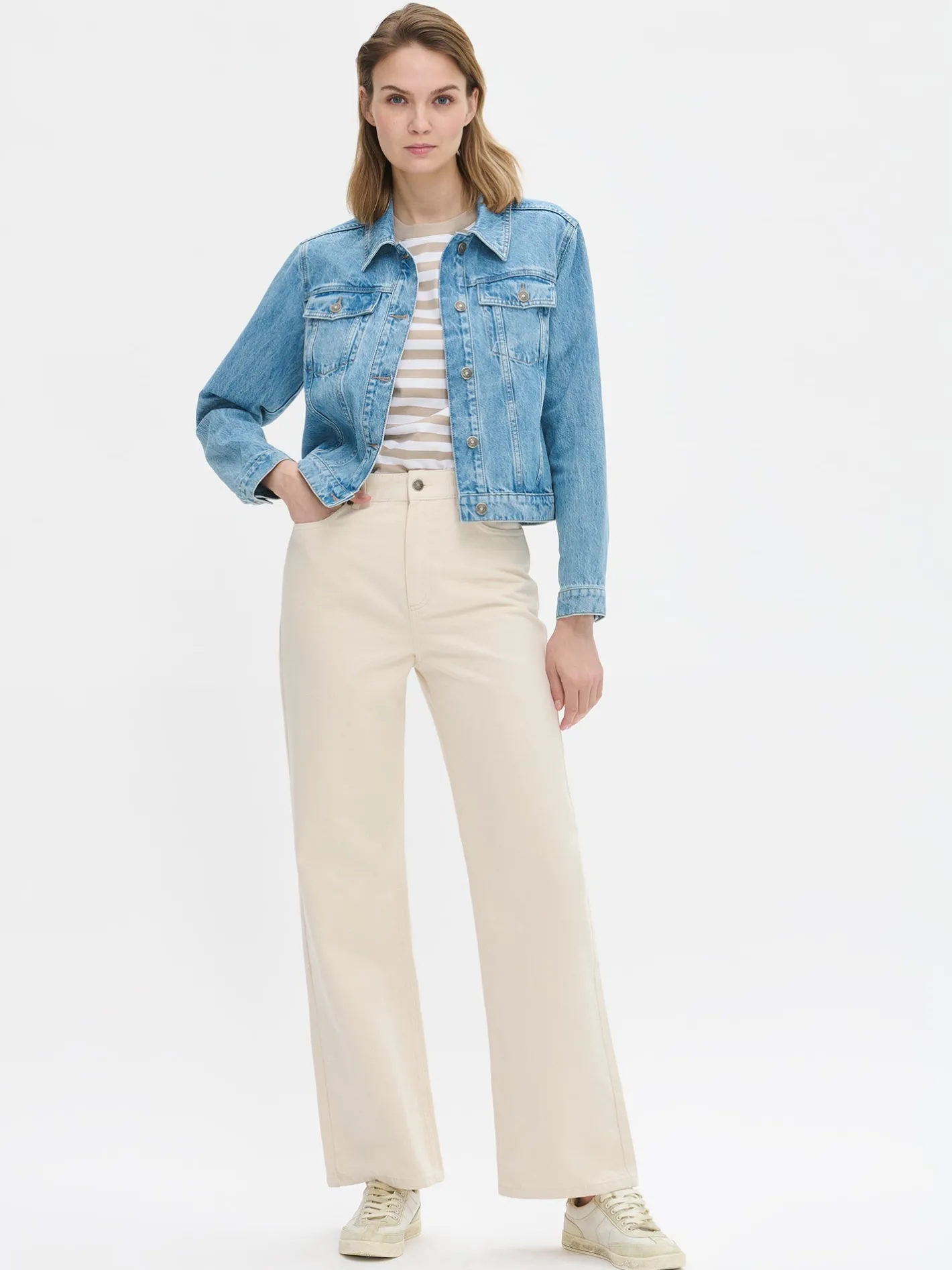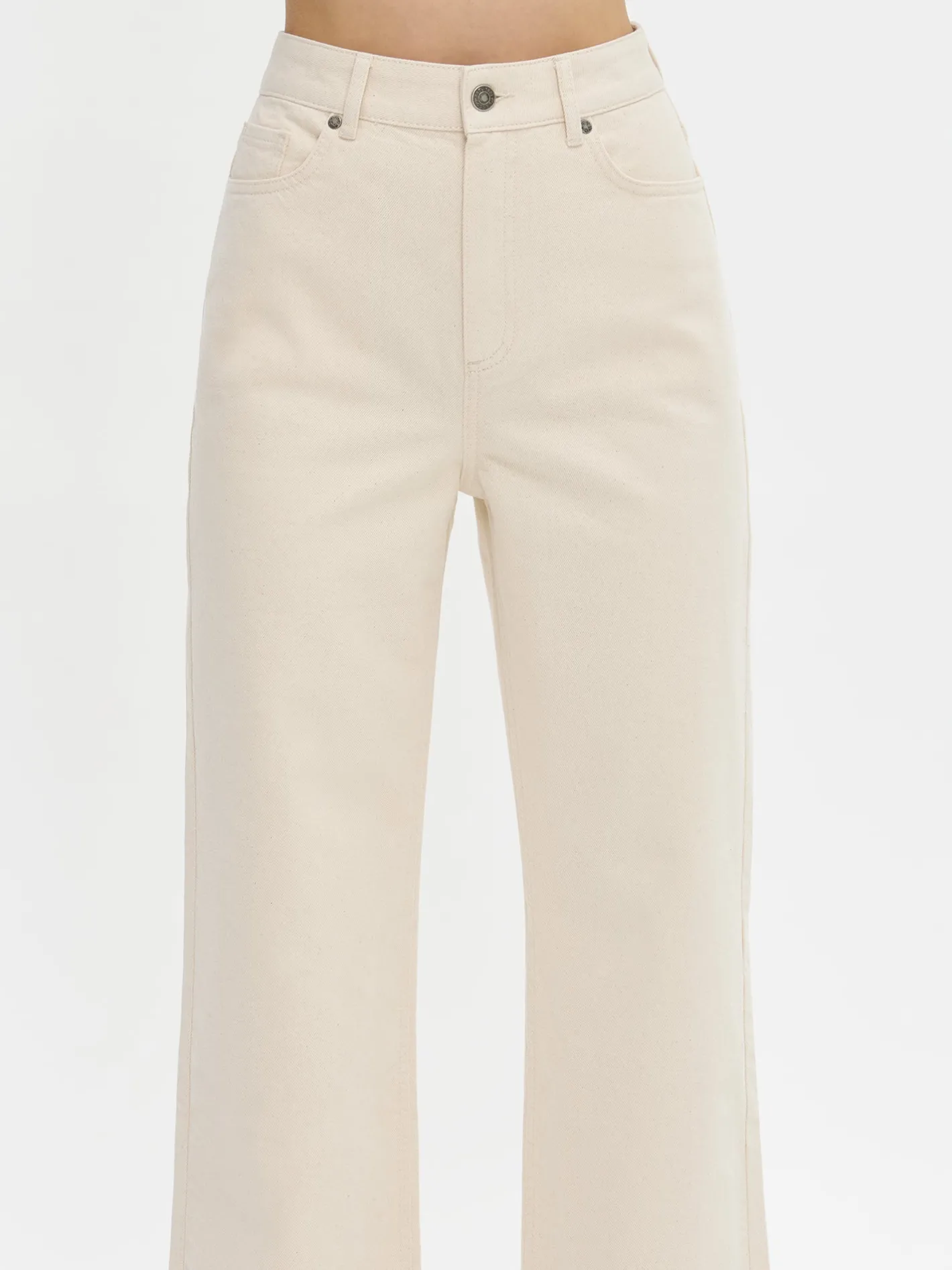 Naisten trendikkäät luonnonvalkoiset Levee-farkut hurmaavat leveillä lahkeillaan ja korkealla vyötäröllään. Ajattoman raikas sävy ja imarteleva istuvuus tekevät näistä farkuista täydellisen valinnan niin arkeen kuin vapaa-aikaan.