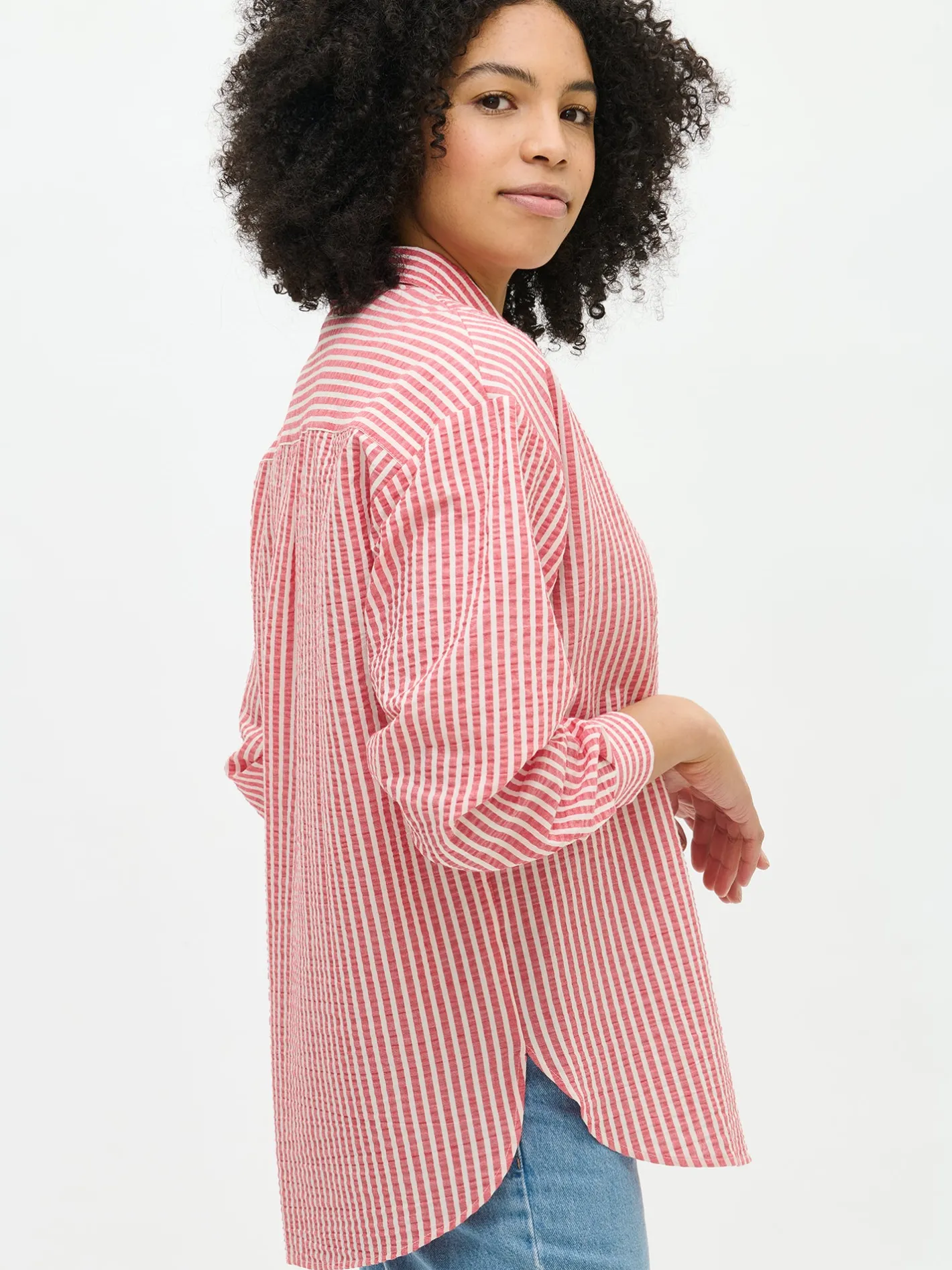 Naisten raidallinen punainen Marea-paitapusero. Marea-paitapuserossa klassinen kauluspaita yhdistyy ajattomaan ja raikkaaseen raitakuosiin. Paitapuserossa on kaulus, pudotettu olkalinja, rintatasku ja napit edessä. Hihat ovat täyspitkät. Puseron pituus koossa 38 on noin 75 cm. Materiaali on kevyttä kudottua puuvilla-viskoosi-elastaanikangasta, jossa on kaunis pintastruktuuri.