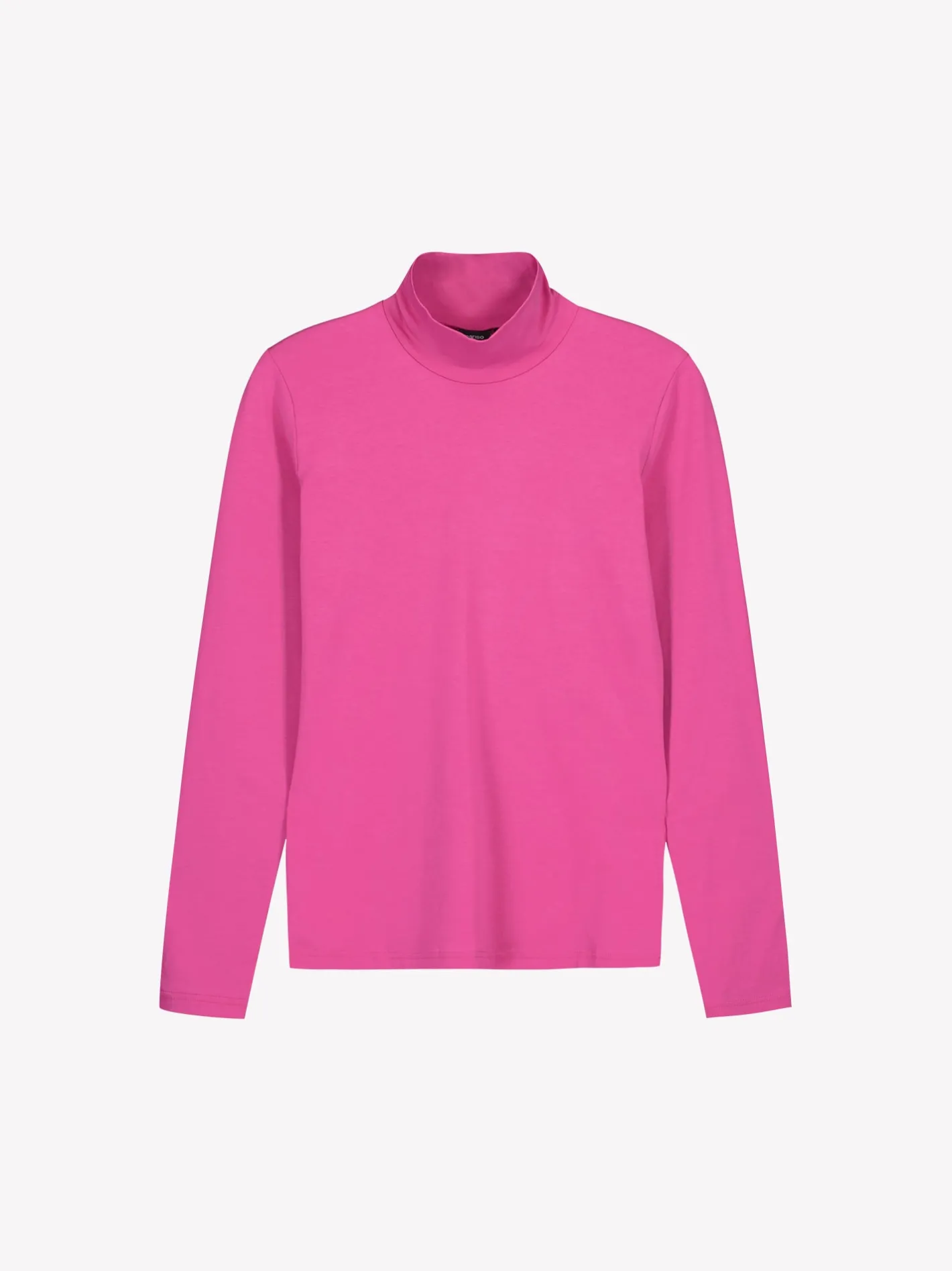 Naisten pinkki Mari-poolopusero. Istuva poolo on ajaton klassikko, johon haluaa pukeutua vuodesta toiseen. Monikäyttöisen poolon voi pukea myös lyhythihaisen mekon tai paidan alle. Istuvassa matalakauluksellisessa poolopuserossa on täyspitkät hihat. Puseron pituus koossa M on noin 65 cm. Poolon materiaali on miellyttävää ja joustavaa luomupuuvilla-elastaani-neulosta.