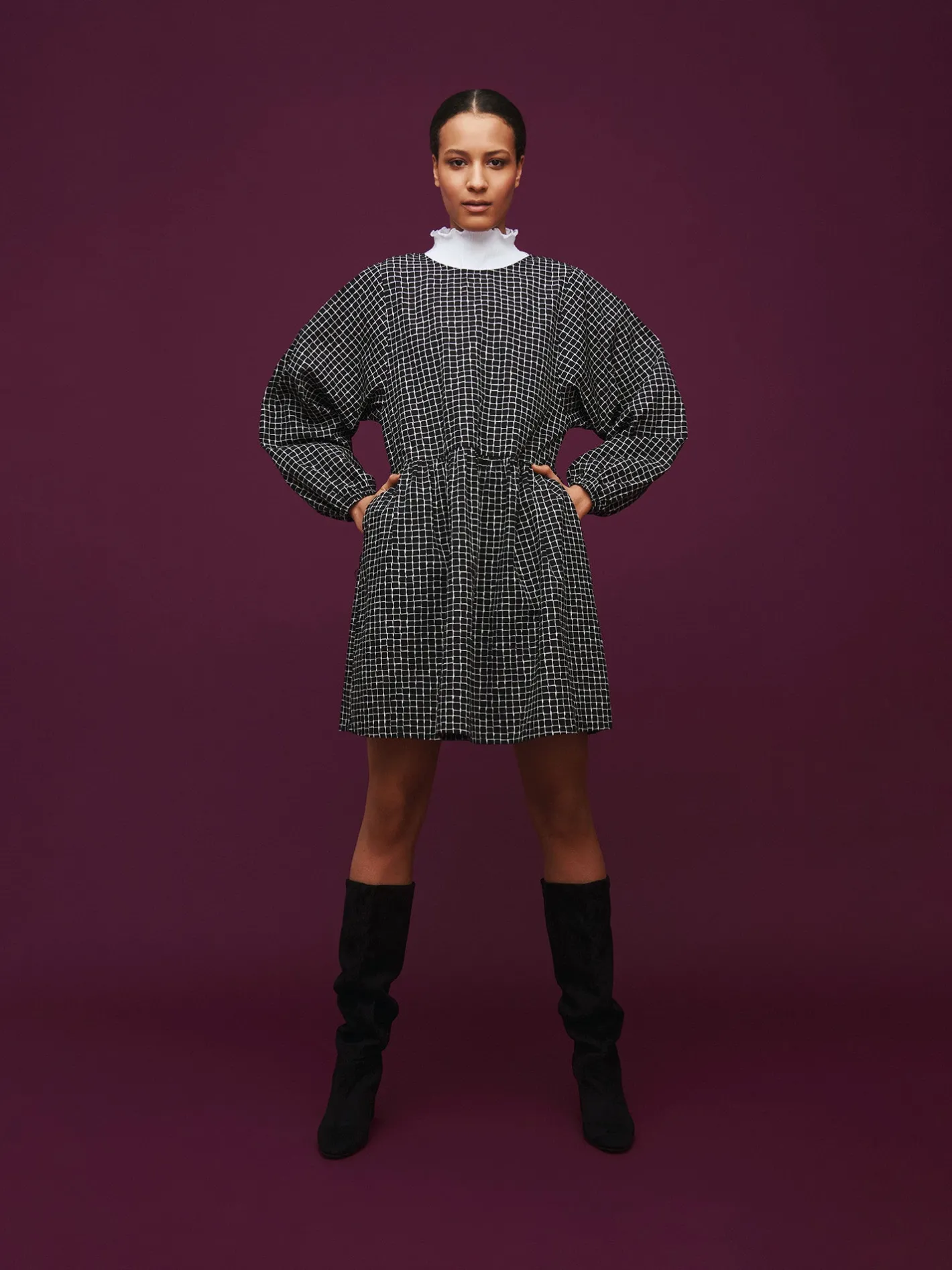 Trilce (ensimmäisessä kuvassa) on 177 cm pitkä ja hänellä on päällään tuotteesta koko S. Mallin ympärysmitat ovat: rinta 97 cm, vyötärö 79 cm ja lantio 113 cm.