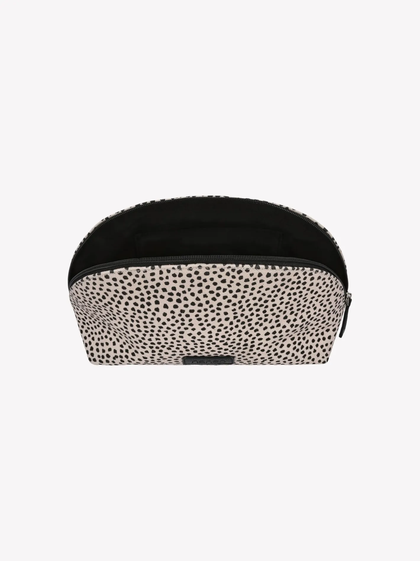 Nanson beige Muru-kosmetiikkalaukku ihastuttavalla sirolla pilkkukuviolla. Muru-meikkipussin päällinen on jämäkkää puuvillaviskoosikangasta ja sisäpuolella on yksivärinen polyestervuorikangas. Kosmetiikkalaukun sisäpuolella on tasku ja päällä vetoketju. Kosmetiikkalaukun koko on noin 25 x 17 x 10 cm.