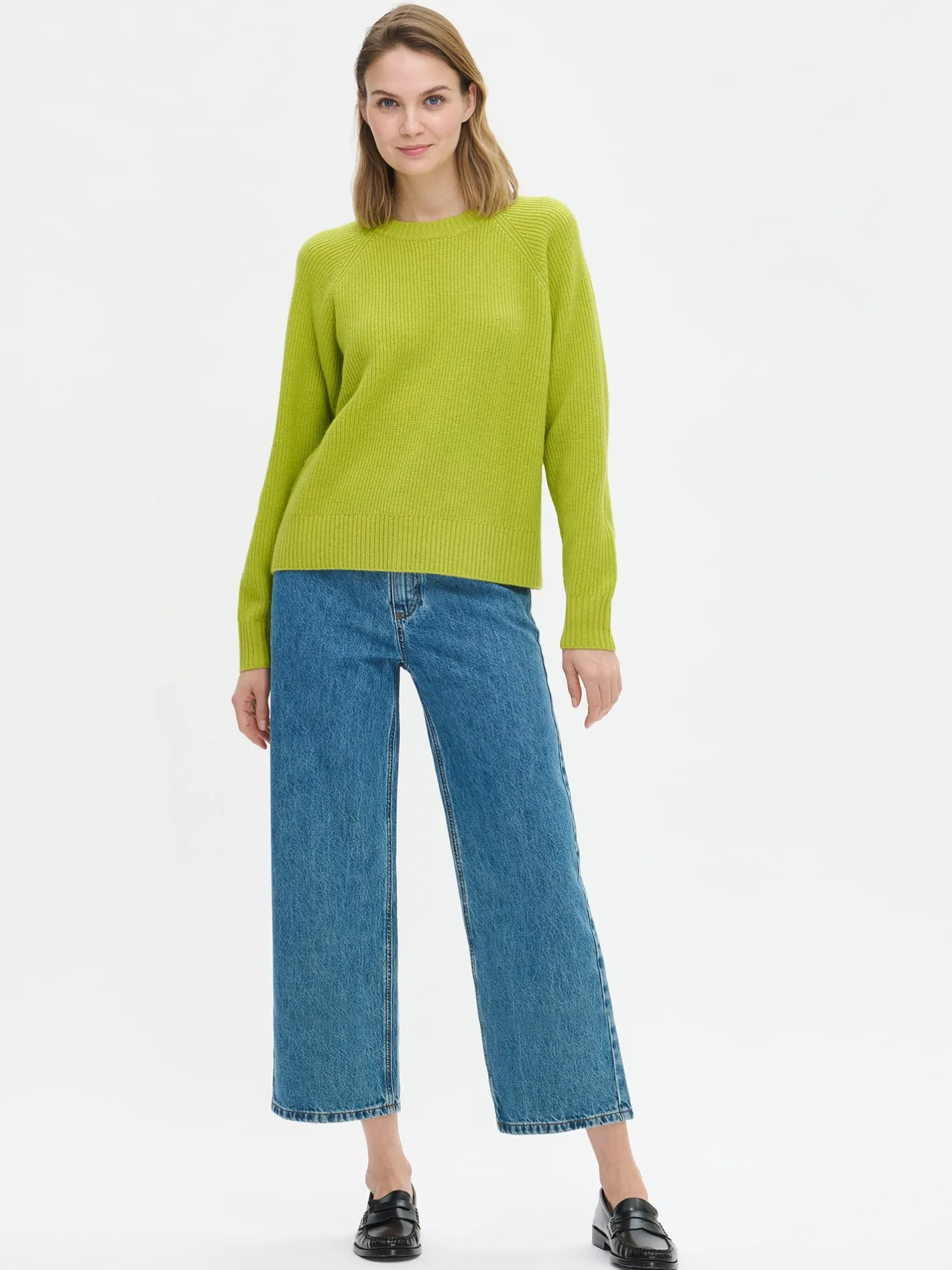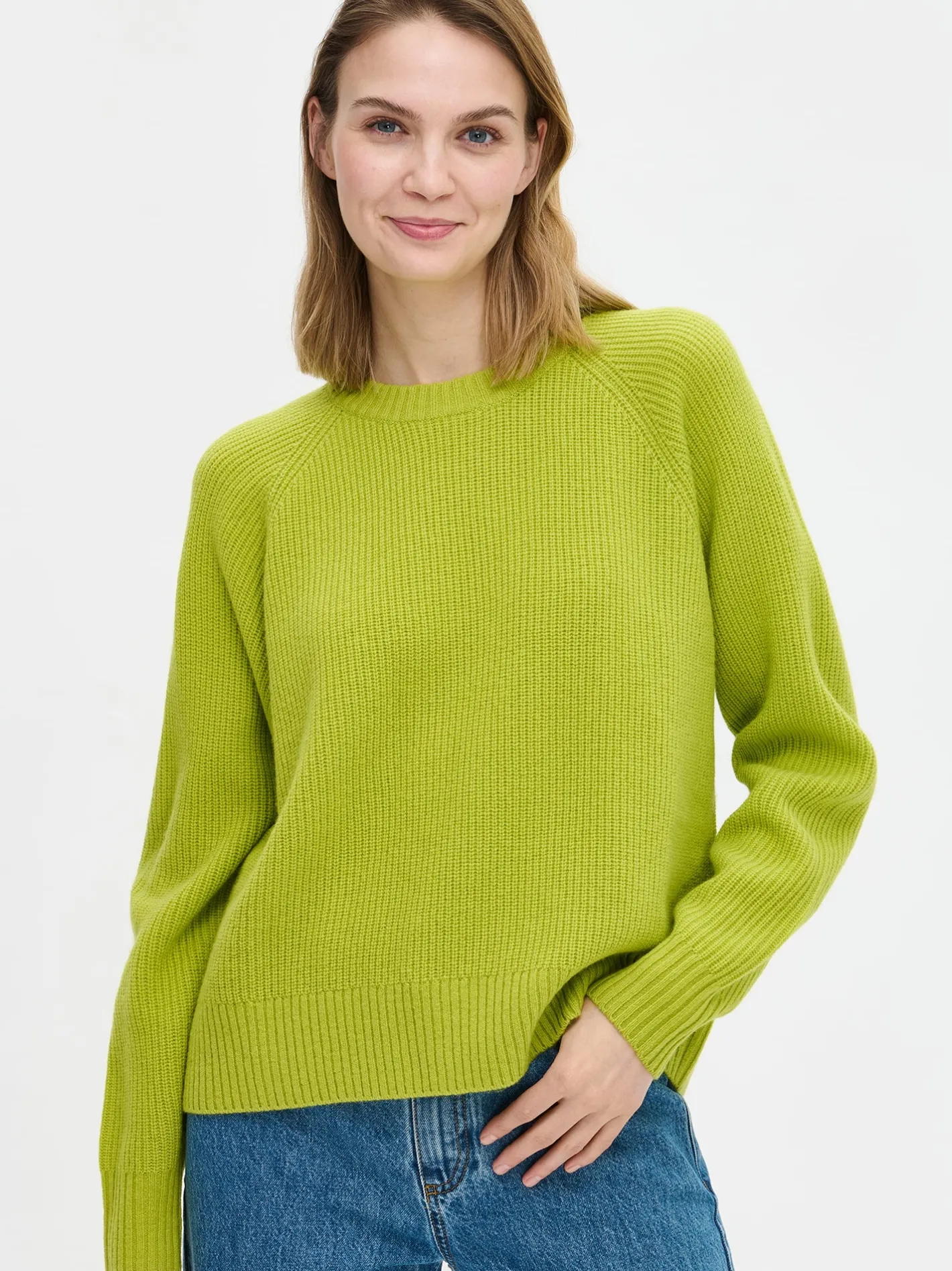 Naisten lämmin ja pehmeä vihreä Pamela-neulepusero pitkillä hihoilla. Raikkaan vihreä neulepaita on syksyn suosikkivaate. Neulepuserossa pyöreä pääntie ja täyspitkät raglanhihat. Neulepuseron pituus koossa M on noin 60 cm. Neulepusero on puolipatenttineulosta. Neulos on pehmeän ja miellyttävän tuntuista villa-viskoosi-polyamidi sekoitetta. Tuotteen valmistuksessa on käytetty sertifioitua villaa.