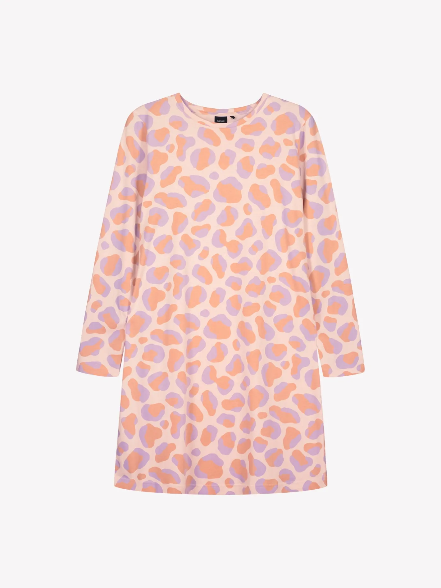 Naisten kuosillinen vaaleanpunainen Pantteri-yöpaita pitkillä hihoilla ja pyöreällä pääntiellä. Yöpaidan pituus koossa M on noin 95 cm. Materiaali on laadukasta, iholla miellyttävän pehmeältä tuntuvaa ja helppohoitoista puuvilla-modaalia, joka pysyy hyvänä pesusta toiseen. Näyttävä Pantteri-kuosi tuo asuun leikkisää ilmettä. Tämä yöpaita on suunniteltu kestämään arjen käyttöä.