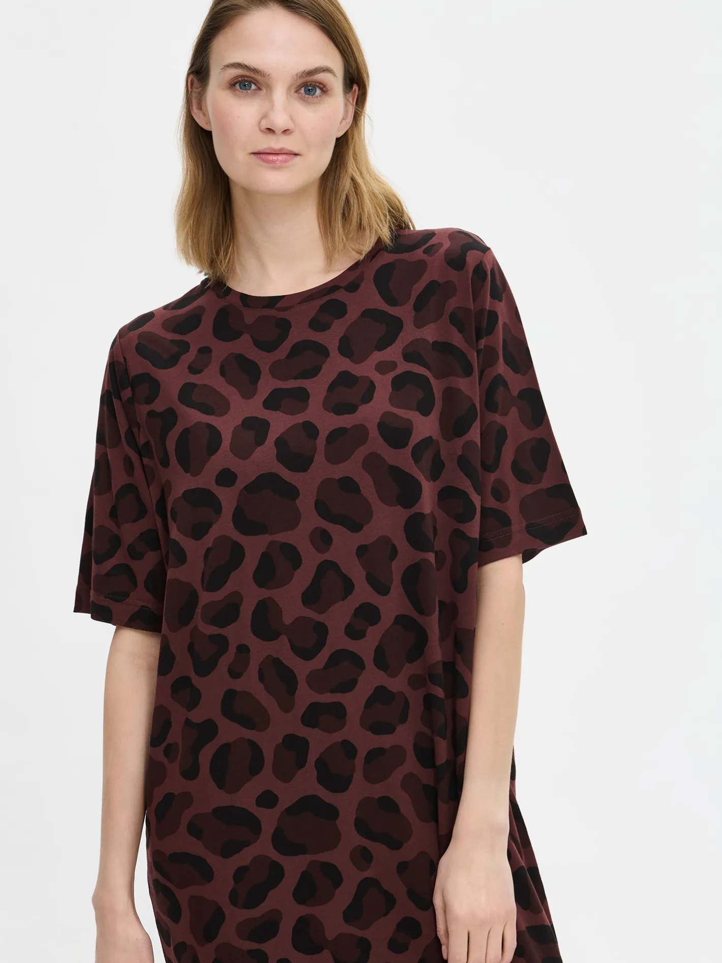 Naisten kuosillinen suoralinjainen Pantteri-yöpaita puoli pitkillä hihoilla ja pyöreällä pääntiellä. Yöpaidan pituus koossa M on noin 130 cm. Materiaali on laadukasta, iholla miellyttävän pehmeältä tuntuvaa ja helppohoitoista puuvilla-modaalia, joka pysyy hyvänä pesusta toiseen. Leikkisä Pantteri-kuosi ja väljä malli tekevät tästä yöpaidasta ihanan valinnan rauhallisiin iltoihin ja hitaisiin aamuihin.