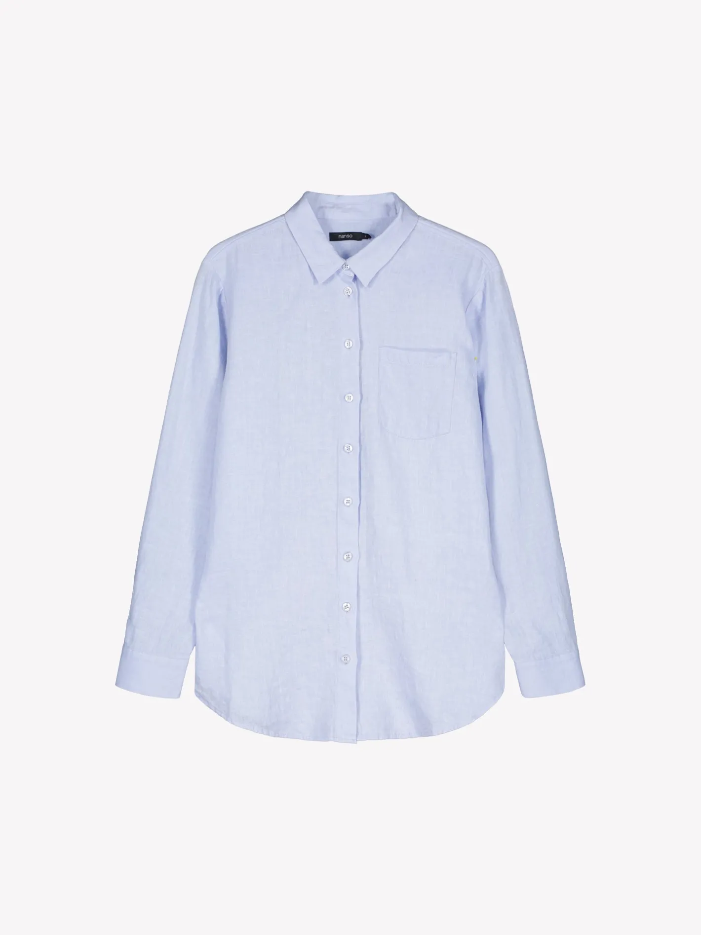 Naisten rento pitkähihainen vaaleansininen Pellava-paitapusero. Klassinen kauluspaita on todellinen vaatekaapin kulmakivi. Ajaton kauluspaita hurmaa monikäyttöisyydellään ja siksi se on varma valinta kerta toisensa jälkeen. Tyylikkäässä pellavapaidassa on napit edessä ja rintatasku. Puseron pituus koossa 38 on noin 75 cm. Materiaali on kudottua pellavakangasta, joka on kestävää ja hengittävää. Pellavalle on ominaista luonnollinen pieni rypistyminen. Tuote on esipesty tuotannossa, joten se ei kutistu ensimmäisessä pesussa.