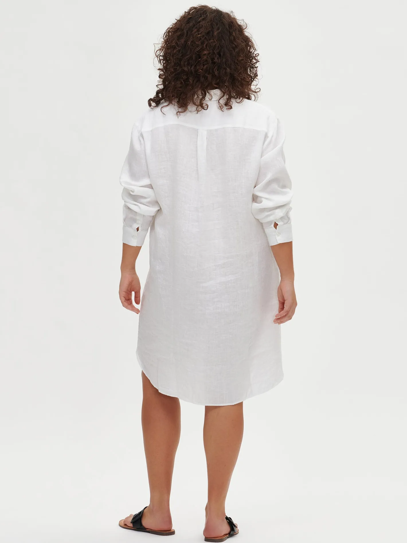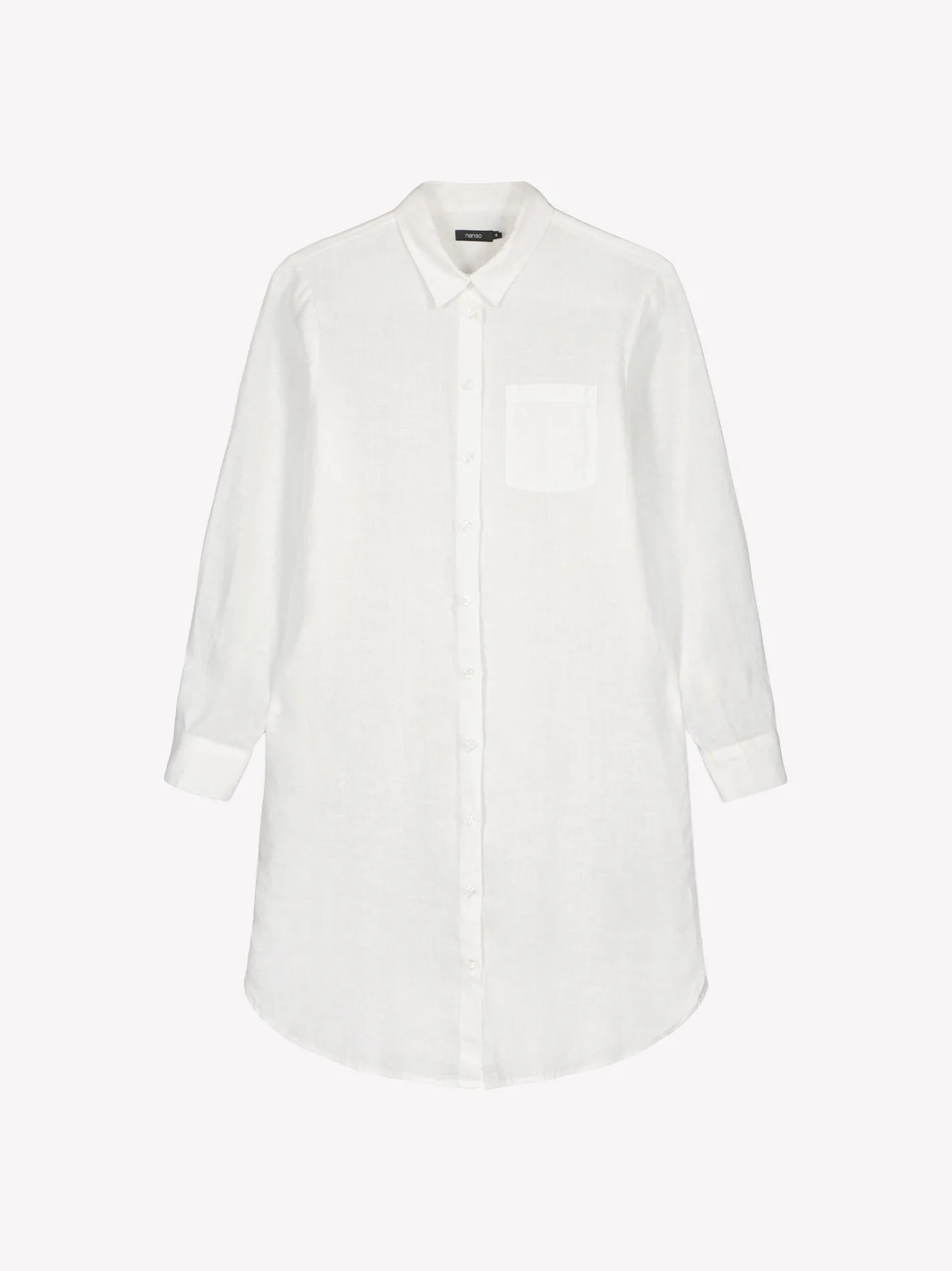 Naisten rento ja pitkä valkoinen Pellava-paitapusero. Klassinen pitkä kauluspaita sopii niin arkeen kuin juhlaan. Tyylikäs pitkähihainen paitapusero on kesän monipuolinen luottovaate – voit pukea sen sekä mekkona, että pitkänä paitapuserona housujen kanssa. Pellavapuserossa on napit edessä ja rintatasku. Pitkä paidan pituus koossa 38 on noin 95 cm. Materiaali on kudottua pellavakangasta, joka on kestävää ja hengittävää. Pellavalle on ominaista luonnollinen pieni rypistyminen. Tuote on esipesty tuotannossa, joten se ei kutistu ensimmäisessä pesussa.