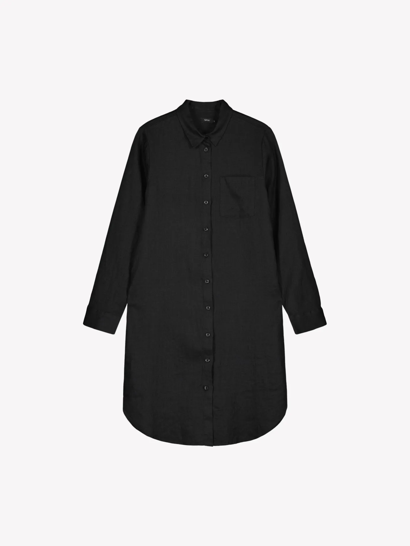 Naisten rento ja pitkä musta Pellava-paitapusero. Klassinen pitkä kauluspaita sopii niin arkeen kuin juhlaan. Tyylikäs pitkähihainen paitapusero on kesän monipuolinen luottovaate – voit pukea sen sekä mekkona, että pitkänä paitapuserona housujen kanssa. Pellavapuserossa on napit edessä ja rintatasku. Pitkä paidan pituus koossa 38 on noin 95 cm. Materiaali on kudottua pellavakangasta, joka on kestävää ja hengittävää. Pellavalle on ominaista luonnollinen pieni rypistyminen. Tuote on esipesty tuotannossa, joten se ei kutistu ensimmäisessä pesussa.