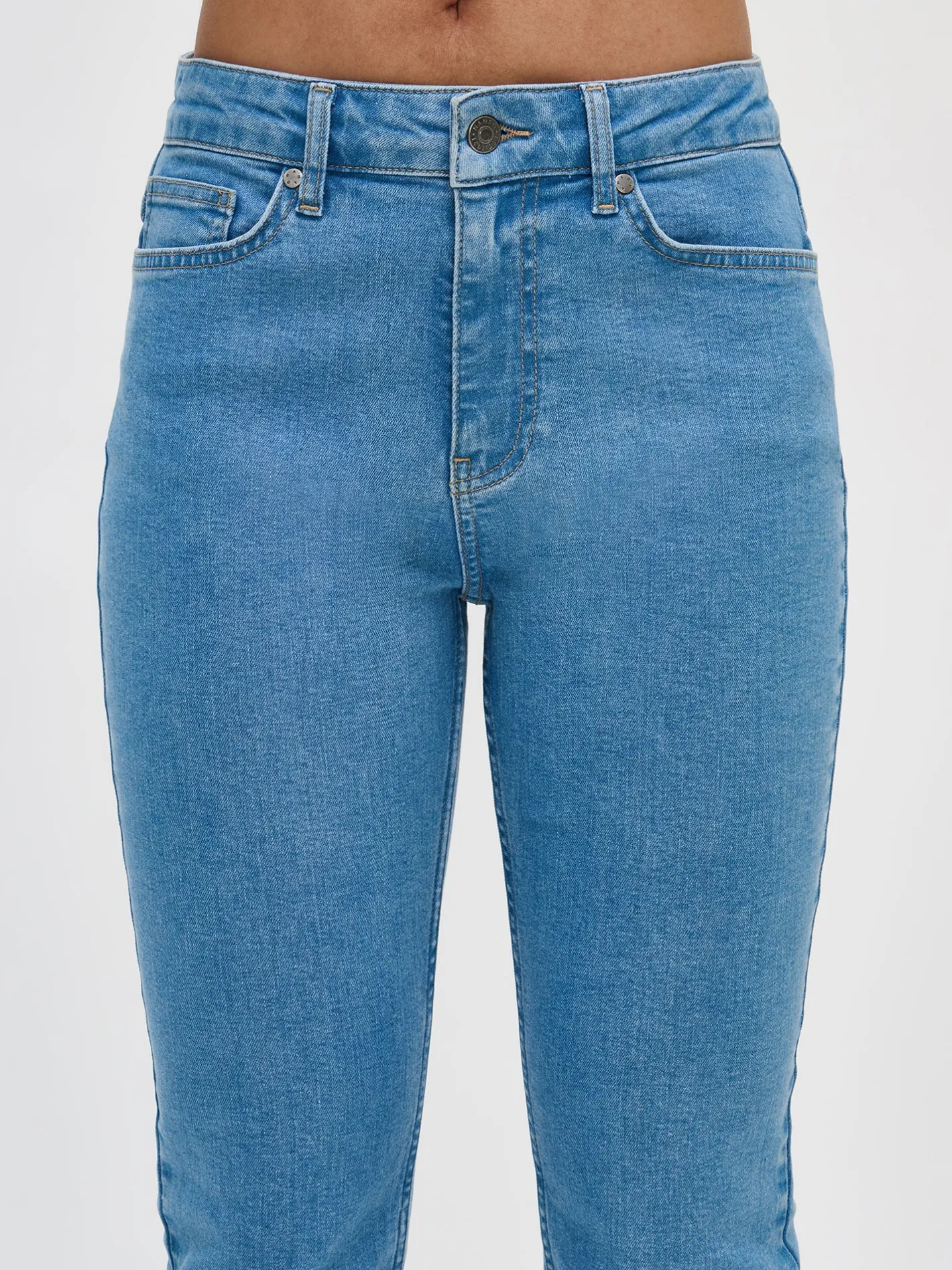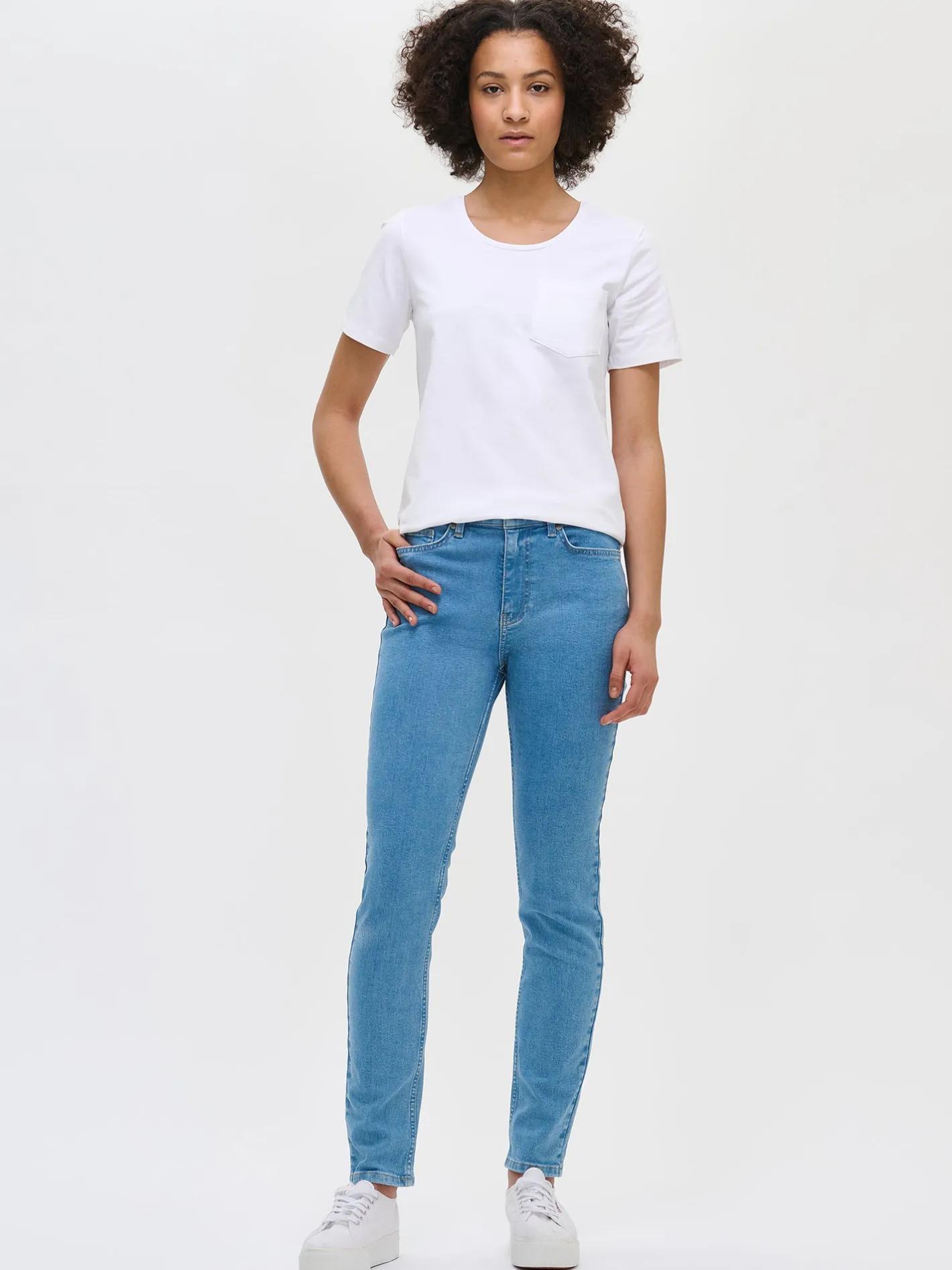 Naisten istuvat vaaleansiniset Pilli-farkut, joissa on normaalikorkuinen vyötärö. Tyylikkäät ja mukavat farkut eivät koskaan poistu muodista ja hyvin istuviin farkkuihin haluaa pukeutua aina. Ajattomat Pilli-farkut ovat todellinen vaatekaapin luottovaate. Farkuissa on vyötärökaitale, edessä vetoketju ja nappikiinnitys. Kapeissa farkuissa on taskut edessä sekä takana ja täyspitkät lahkeet. Farkkujen lahkeen sisäpituus koossa 38 on noin 78 cm. Materiaali on kudottua twillsidoksista puuvilla-denimkangasta, johon elastaani tuo joustavuutta ja mukavuutta. 20% kankaaseen käytetystä puuvillasta on kierrätettyä.