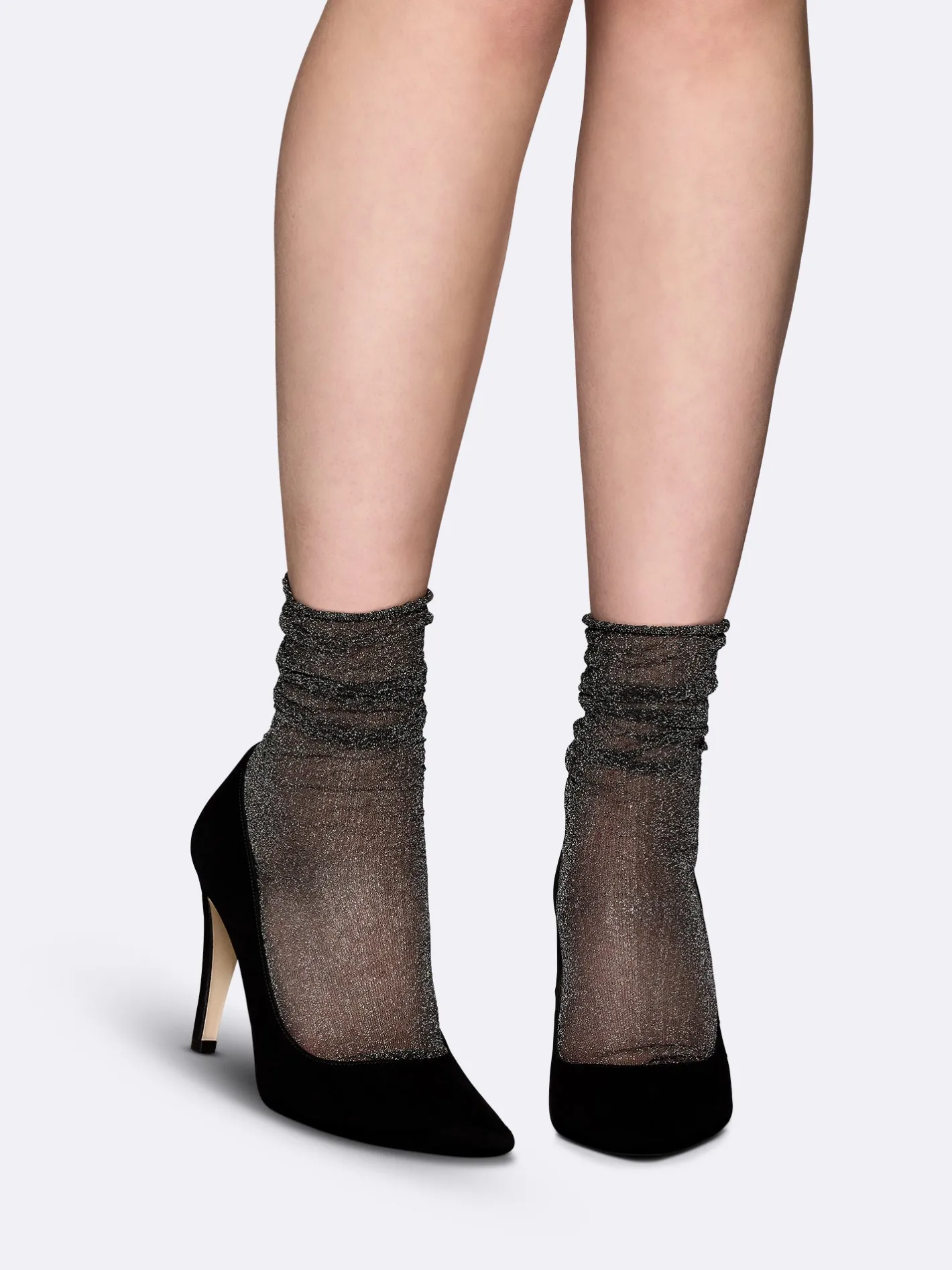Voguen naisten ohuet kimaltavat korkeavartiset nilkkasukat. Näyttävät ja tyylikkäät sukat ovat täydelliset juhlaan sekä tuomaan säihkettä arjen pukeutumiseen.