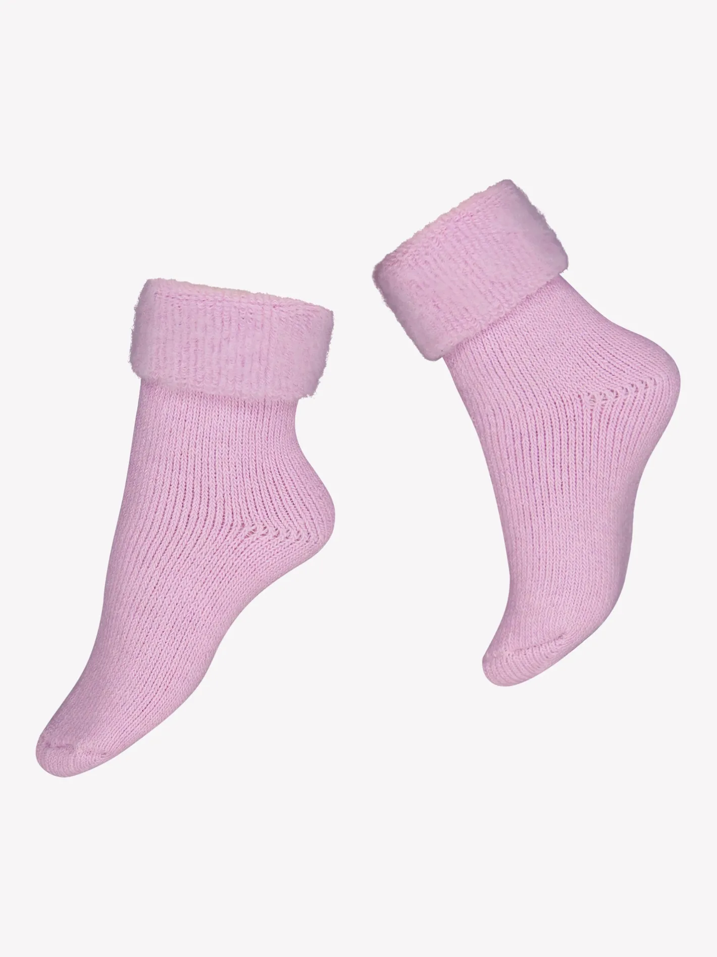 Voguen ihanan pehmeät vaaleanpunaiset alpakkavillasekoitesukat. Pörröiset kotisukat ovat ihanteelliset leppoisaan kotona oleskeluun.