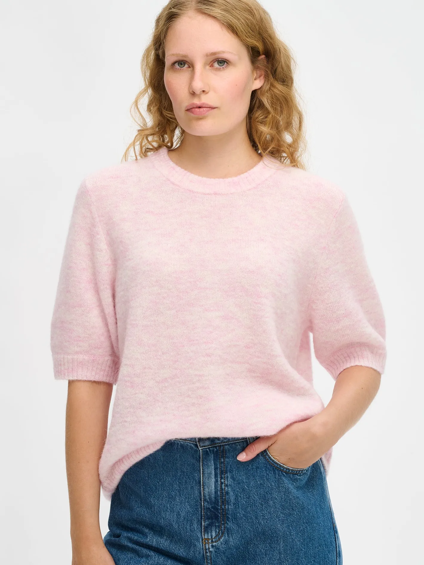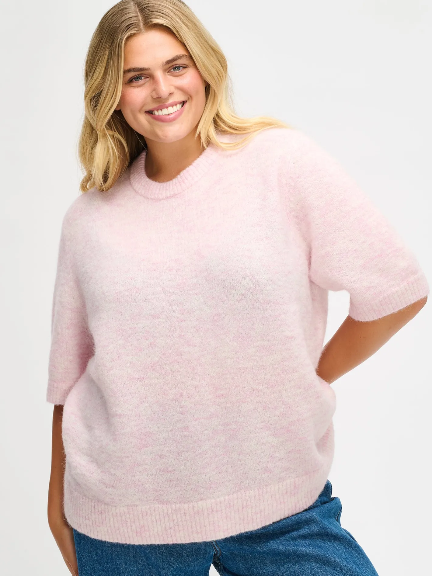 Naisten ylellinen vaaleanpunainen Tuohi-neulepusero. Muotoonneulotussa neulepuserossa on pyöreä pääntie ja lyhyet ½-mittaiset hihat. Puserossa on resori pääntiellä, helmassa ja hihansuissa. Pehmeä neulos laskeutuu kauniisti ja tuntuu miellyttävältä päällä. Pituus koossa M on noin 62 cm. Neuleen hoito-ohjeet löydät .