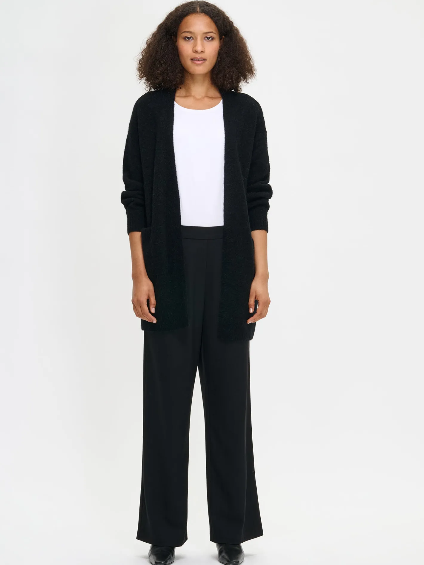 Naisten ylellinen musta Tuohi-neuletakki. Pitkähihaisessa neuletakissa on edessä taskut ja resorit hihansuissa sekä helmassa. Pehmeä neulos laskeutuu kauniisti ja tuntuu miellyttävältä päällä. Pituus koossa M on noin 80 cm. Neuleen hoito-ohjeet löydät .