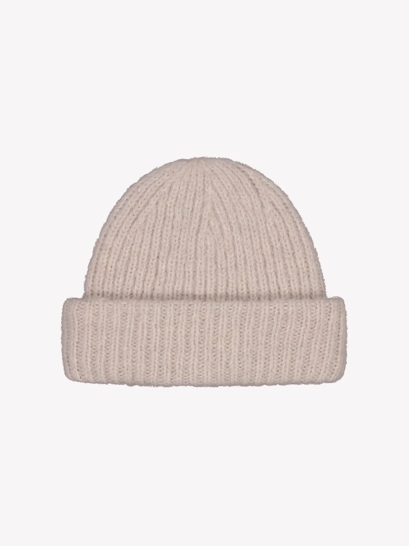 Naisten kaunis beige Usva-ribbineulepipo. Muhkea neulepipo lämmittää viileässä säässä ja tuntuu ihanan pehmeältä päässä. Yhdistä lämmin Usva-pipo pehmeään ja tyylikkääseen toppatakkiin talveksi. Neulepipossa on leveä ja tyylikäs tuplakäänne reunassa. Neulos on laadukasta, pehmeän ja miellyttävän tuntuista setifioidun villan ja alpakan sekoitetta. Neuleen hoito-ohjeet löydät
