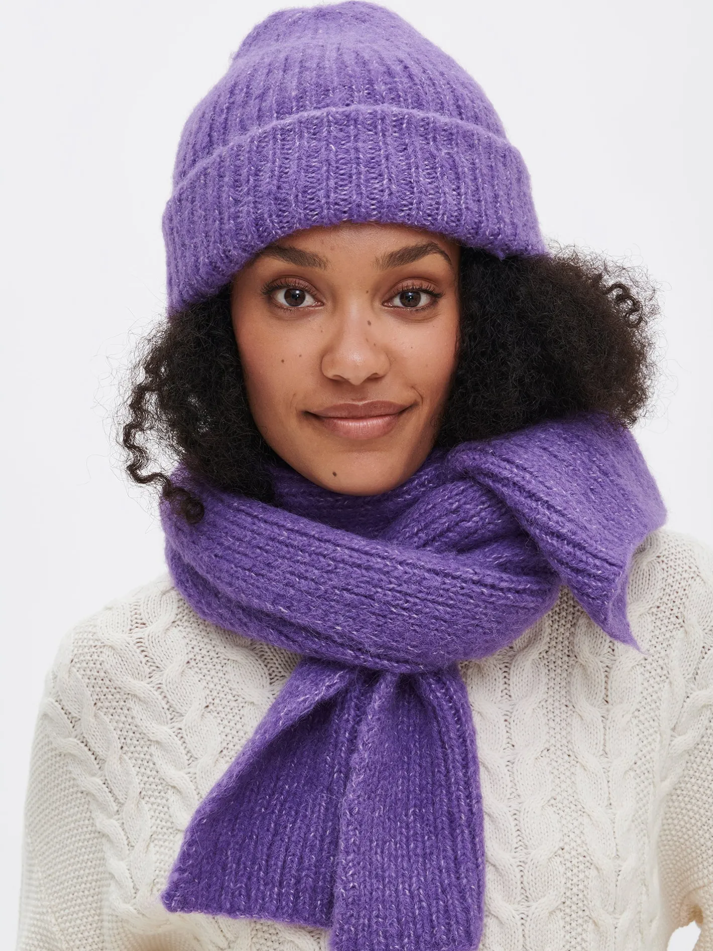 Naisten kaunis lila Usva-ribbineulepipo. Muhkea neulepipo lämmittää viileässä säässä ja tuntuu ihanan pehmeältä päässä. Yhdistä lämmin Usva-pipo pehmeään ja tyylikkääseen toppatakkiin talveksi. Neulepipossa on leveä ja tyylikäs tuplakäänne reunassa. Neulos on laadukasta, pehmeän ja miellyttävän tuntuista setifioidun villan ja alpakan sekoitetta. Neuleen hoito-ohjeet löydät