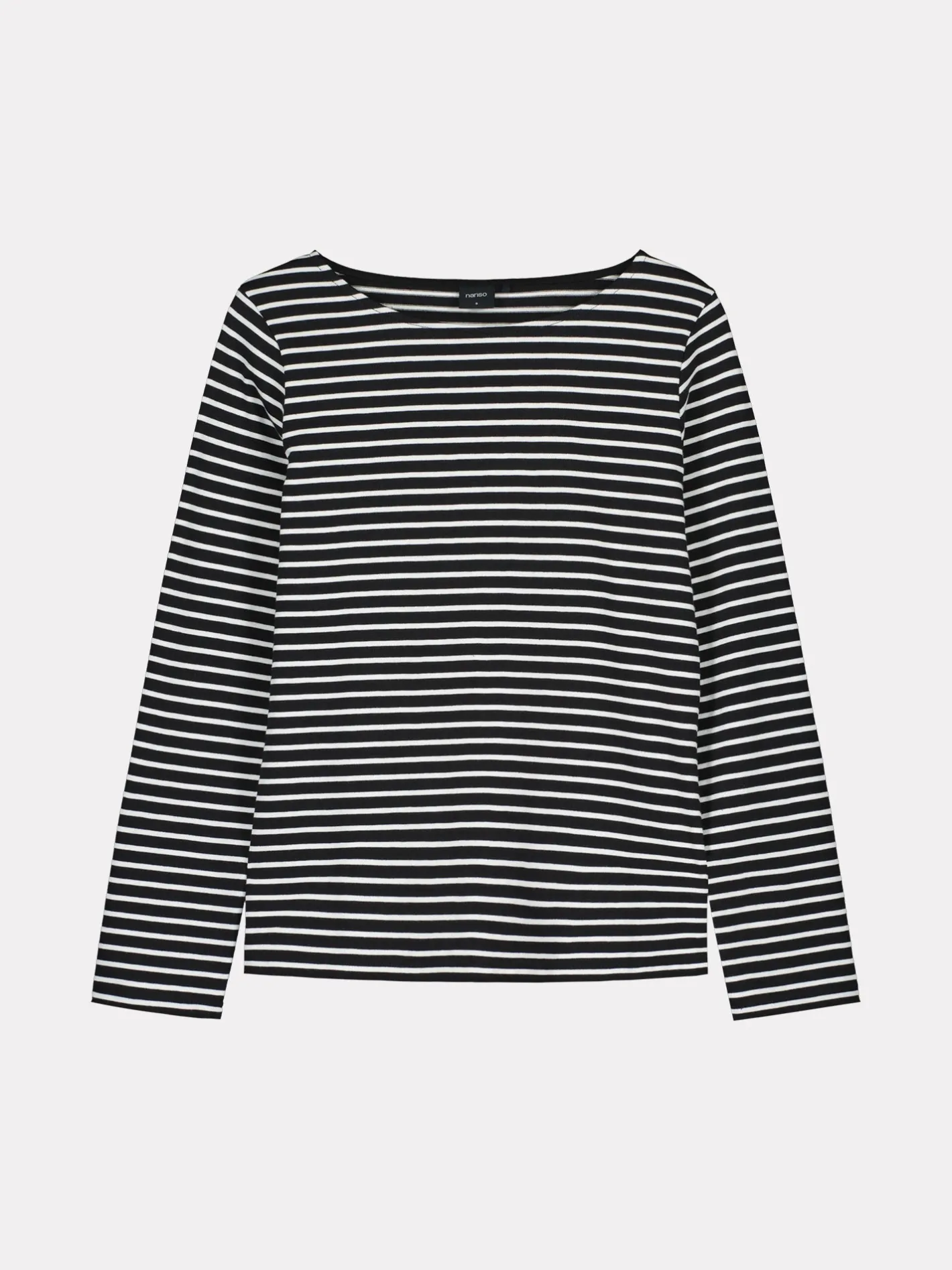 Naisten pitkähihainen raidallinen mustavalkoinen Vaaka-pusero. Istuvassa puserossa on kantilla viimeistelty venepääntie ja täyspitkät hihat. Puseron pituus koossa M on noin 65 cm. Materiaali on miellyttävän tuntuista ja helppohoitoista puuvillaneulosta. Materiaalille on ominaista 3-5% kutistuminen ensimmäisessä pesussa. Pesun jälkeen muotoile tuote kosteana.