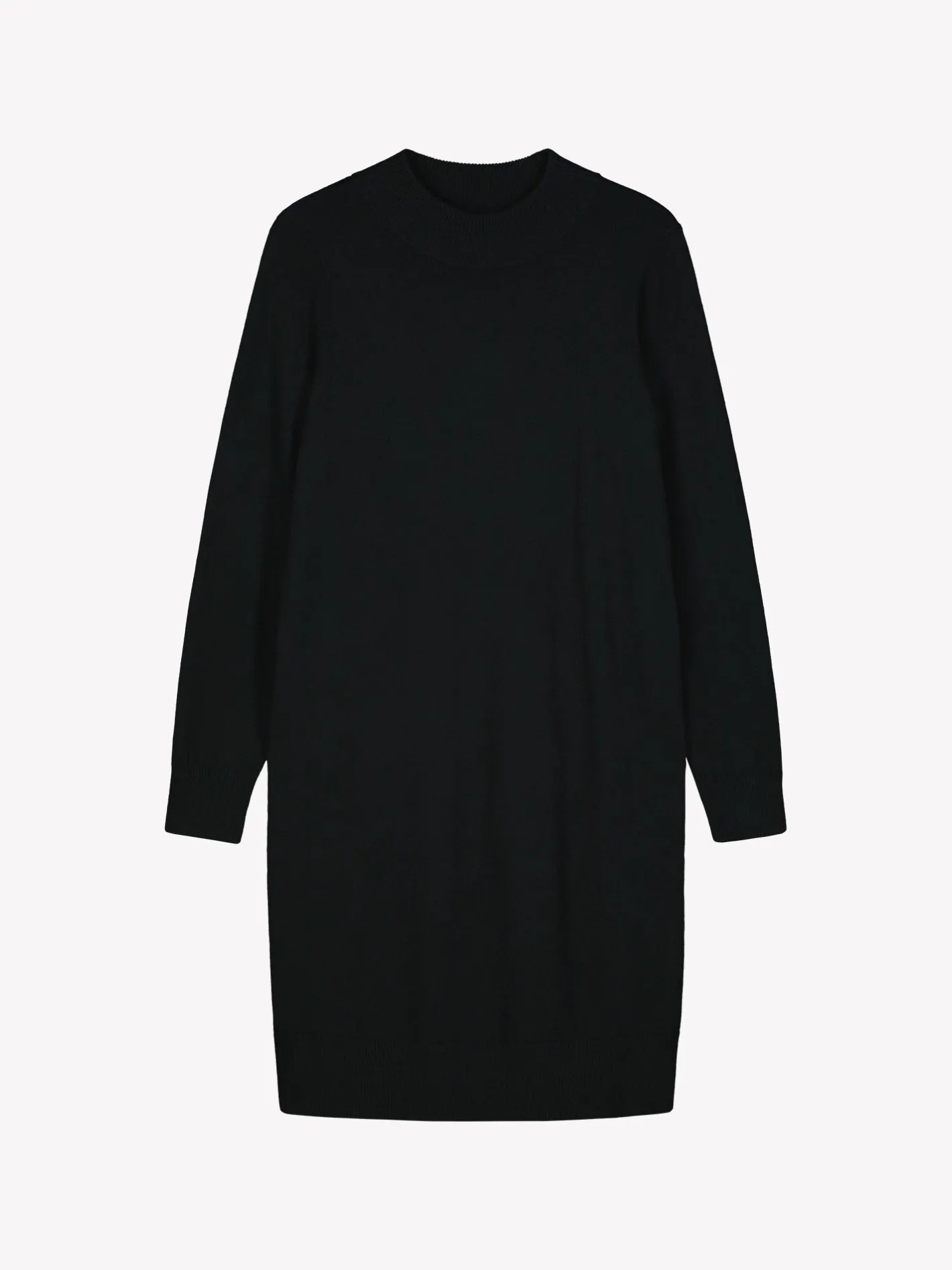 Naisten musta Villis-mekko. Suoralinjaisessa neulemekossa on pystykaulus ja täyspitkät hihat. Mekossa on resori helmassa ja hihansuissa. Mekon pituus koossa M on noin 95 cm. Materiaali on laadukasta merinovillan ja puuvillan sekoitetta. Tuotteen valmistuksessa on käytetty sertifioitua mulesing-vapaata merinovillaa. Neuleen hoito-ohjeet löydät