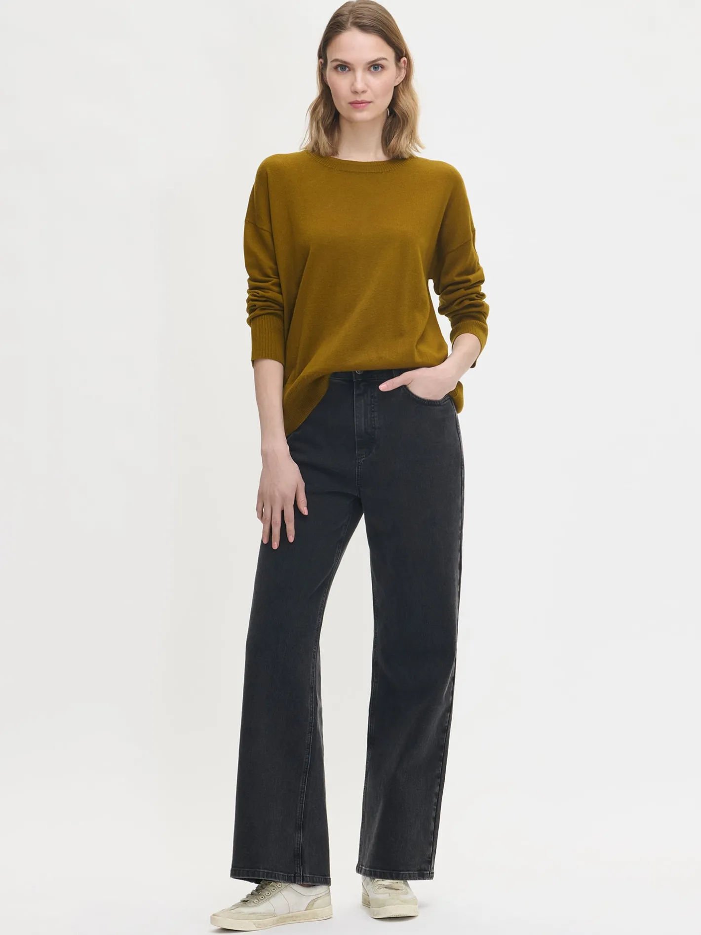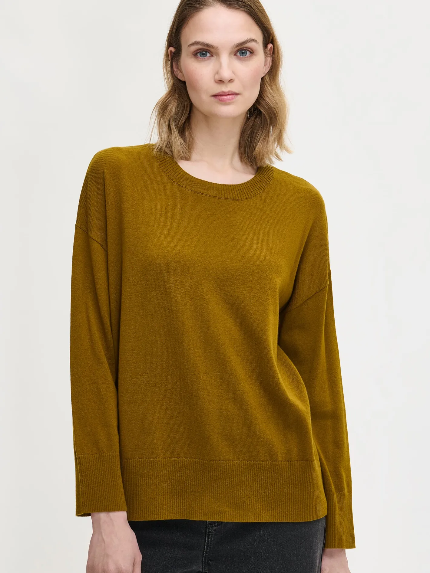 Naisten oliivinvihreä laatikkomallinen Villis-neulepusero. Pehmeä villapaita on syksyn luottovaate. Neulepuserossa on pyöreä resoripääntie, pudotettu olkalinja ja täyspitkät hihat. Helmassa ja hihansuissa on leveä resori. Puseron pituus koossa M on noin 62 cm. Materiaali on laadukasta merinovillan ja puuvillan sekoitetta. Tuotteen valmistuksessa on käytetty mulesing-vapaata merinovillaa. Neuleen hoito-ohjeet löydät