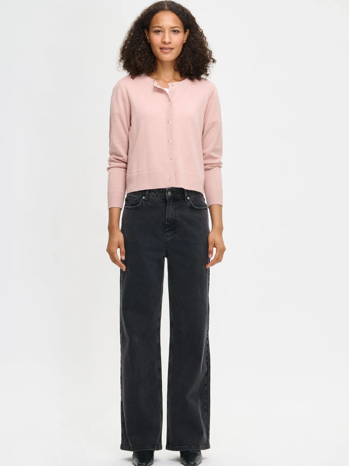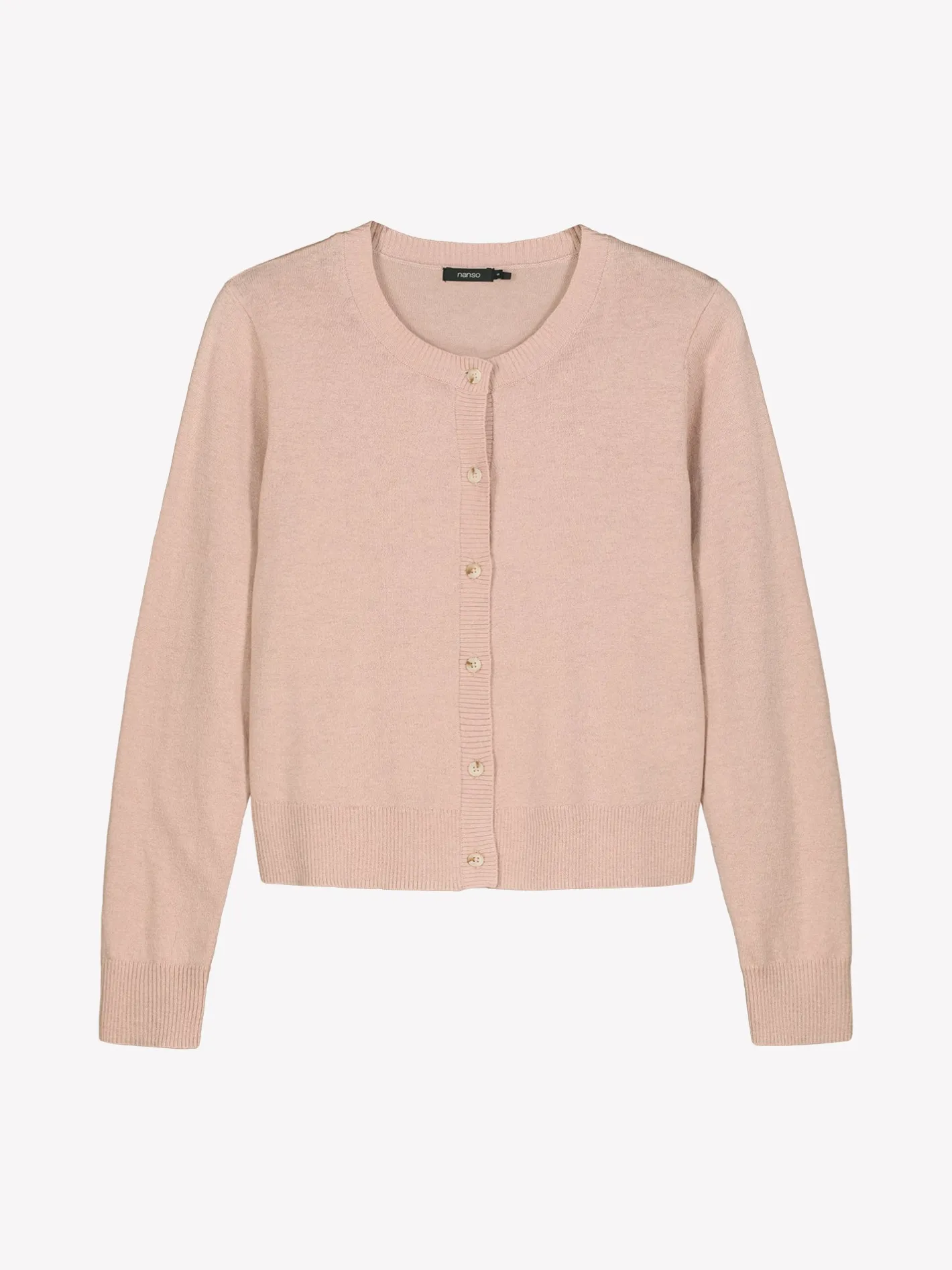 Naisten vaaleanpunainen Villis-neuletakki. Mukava neuletakki on neulottu laadukkaasta merinovillan ja puuvillan sekoitteesta. Neuletakissa on edessä napitus sekä resori helmassa ja hihansuissa. Neuleen suorat hihat ovat täyspitkät. Neuletakin pituus koossa M on noin 55 cm. Tuotteen valmistuksessa on käytetty sertifioitua mulesing-vapaata merinovillaa. Neuleen hoito-ohjeet löydät
