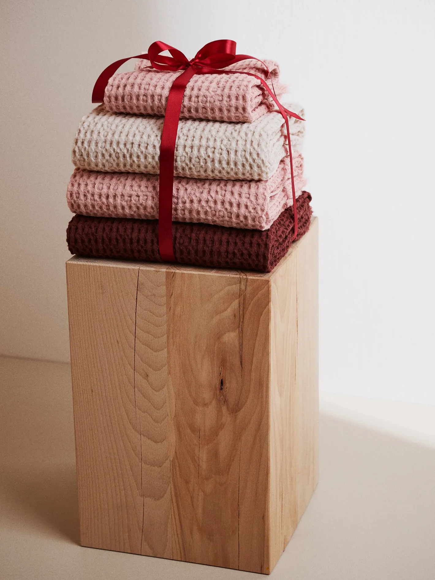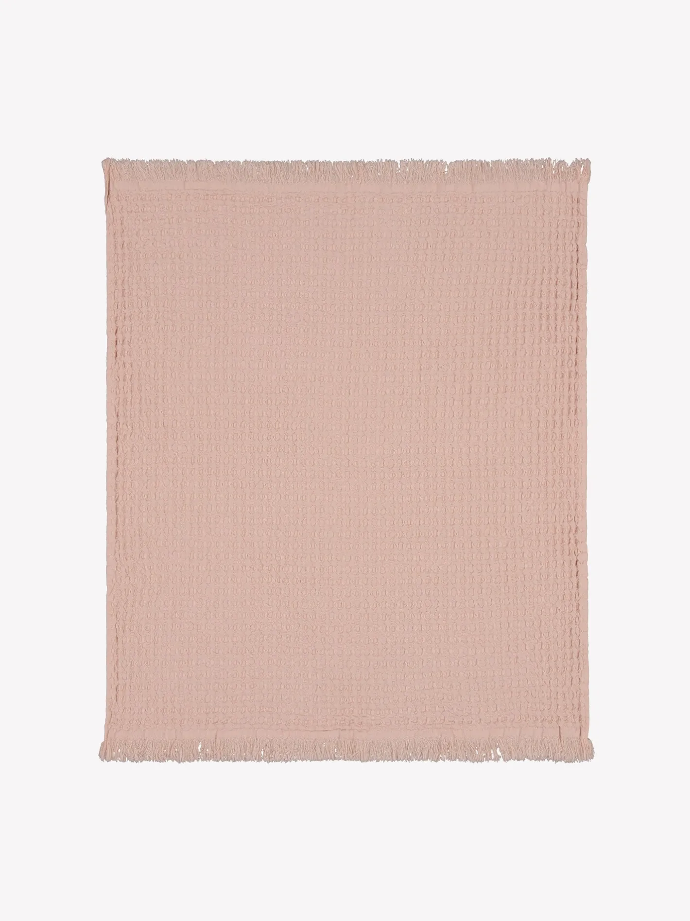 Nanson roosa Vohveli-käsipyyhe. Vohveli-pyyhkeessämme yhdistyvät nostalgisen vohvelikankaan hyvät ominaisuudet ja moderni ulkonäkö. Vohvelikangas imee hyvin kosteutta ja kuivuu nopeasti keveytensä ansiosta. Laadukas pyyhe tuntuu miellyttävältä iholla. Kangas on värjätty Öko-Tex 100 -standardin mukaisilla värjäysaineilla. Käsipyyhkeen koko on 50 cm x 70 cm ja ripustuslenkki on pitkällä sivulla.
