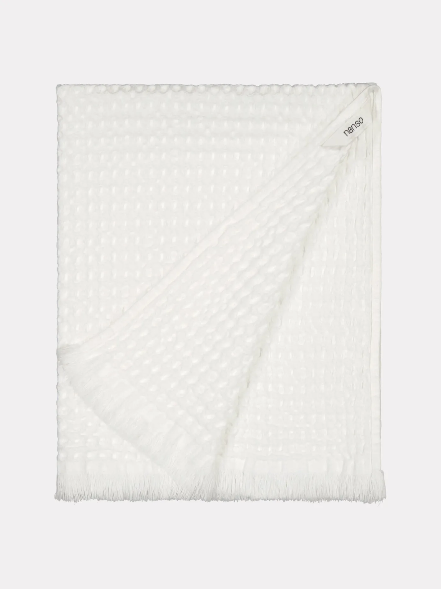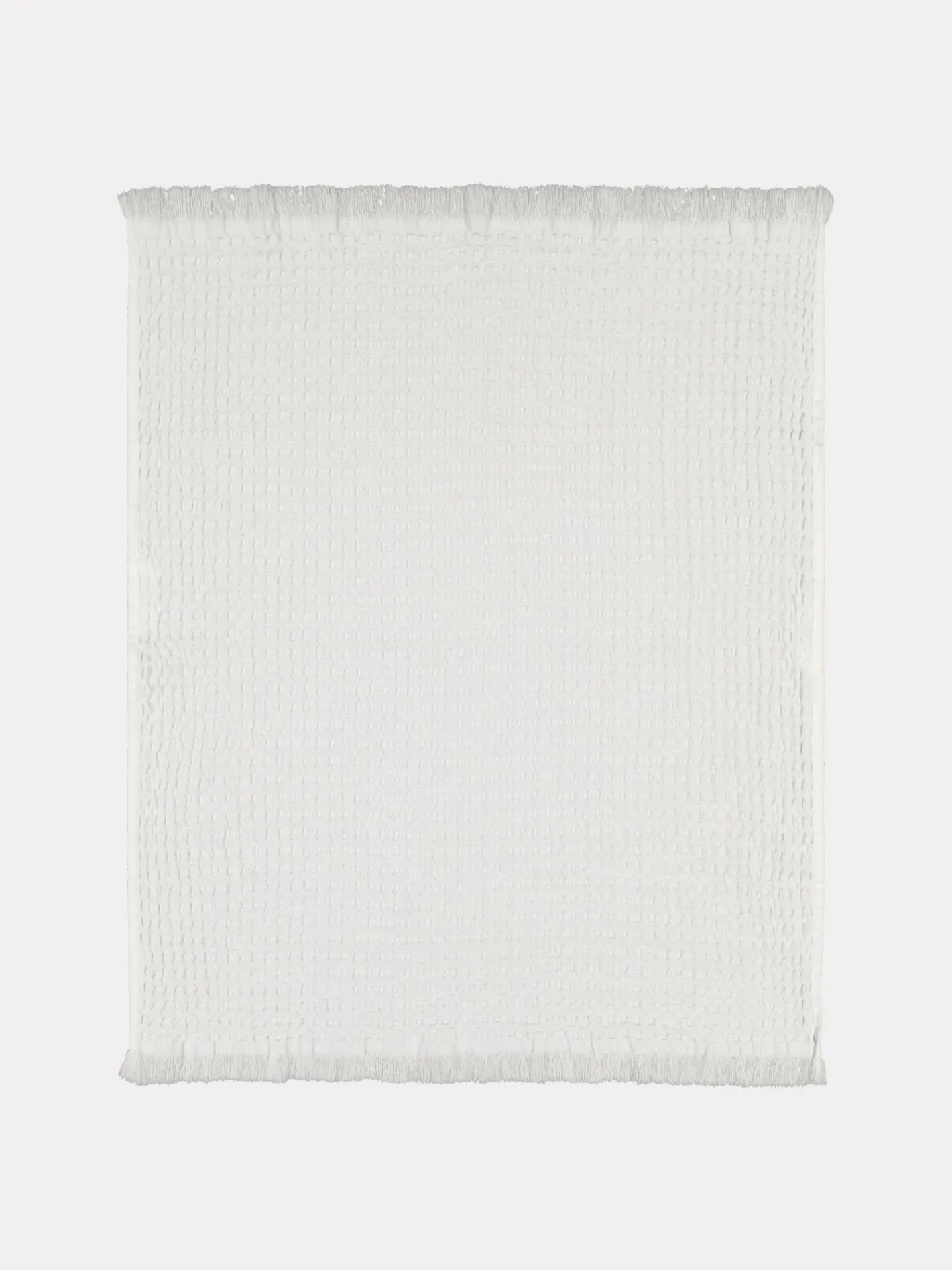 Käsipyyhkeen koko on 50 cm x 70 cm. Pyyhkeen reunassa on koristeelliset hapsut. Pyyhkeen ripustuslenkki on pitkällä sivulla. Kangas on värjätty Öko-Tex 100 -standardin mukaisilla värjäysaineilla.